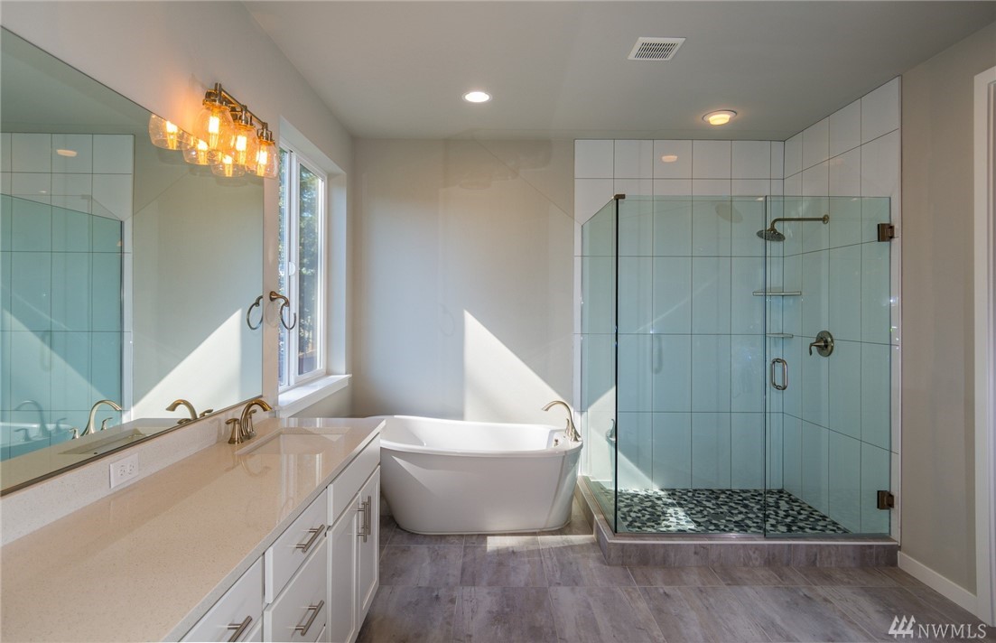 MOVE IN Ready! Pulte Homes introduces the Meadows at Palm Creek Community in Bothell. The Davenport Plan features 6 BR, 4.5 baths. Bedroom suite on Main, Open Great Room, Kitchenaid Appliances w/dbl Oven, Fridge, Quartz counters, Mudroom, Pulte Planning center & 3-car garage; 5 bedrooms & Game Room upstairs. Large Covered Patio w/gas stub, Owners Bath Freestanding Tub & Shower, 9' & 10' Ceilings, 8' tall doors throughout, AC & more. Large 55'x70' backyard on North Facing lot. Fence included.