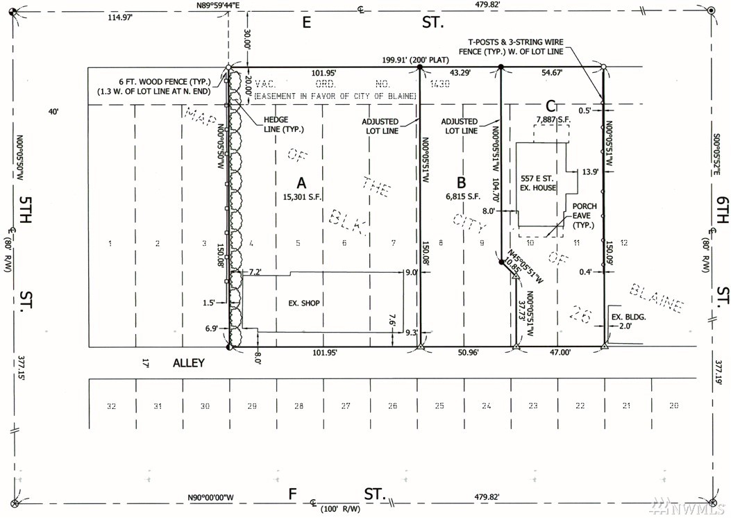 6815 SQF level building lot in Blaine. This is lot B in the diagram. Zoning allow an ADU (mother-in-law suite) up to 600 sqf.