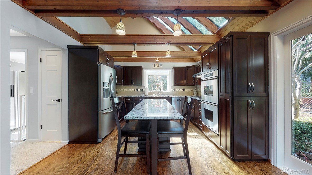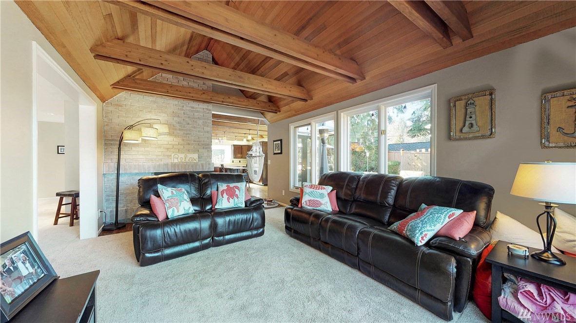 Beautifully remodeled home with stunning open beam ceilings & Weather Vane windows that reach from floor to ceiling. This Talbot Park home has tons of charm. The gracious brick patio wraps LR to Master w/access through multiple sets of French doors, perfect for summer BBQ’s & evenings by the Sound. Impressive design & details throughout this Thuesen Custom Home. Quality updates throughout this amazing custom one of a kind home with Peek-a-boo Sound views & Private Beach access!