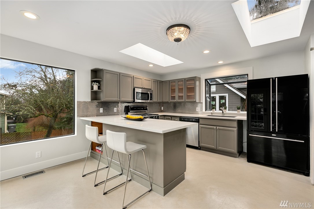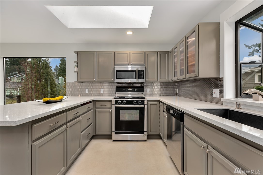 East of Market Gem! Located blocks from downtown Kirkland and across the street from Reservoir Park, this home has updates throughout including in the kitchen and bathrooms. You enter into a formal living room with fireplace and hardwoods throughout. Out back is a large, flat fenced-in yard, fruit trees, and great entertaining deck. Large lot could also be built on and have lake/mountain views from a 2nd story. Award winning schools.