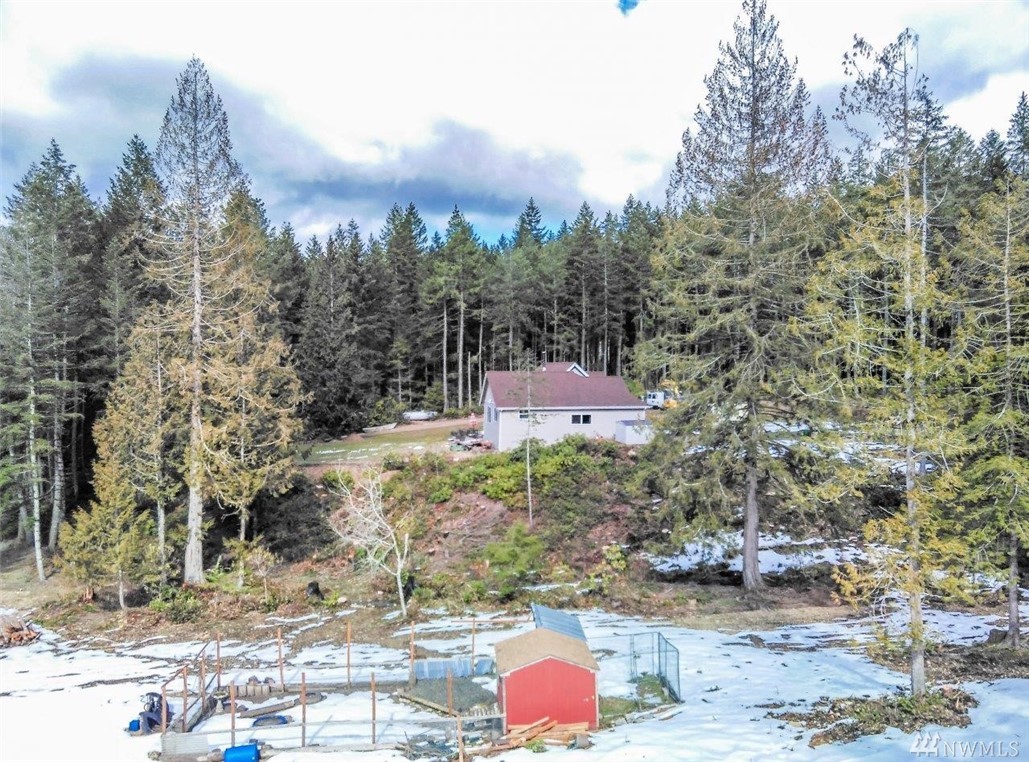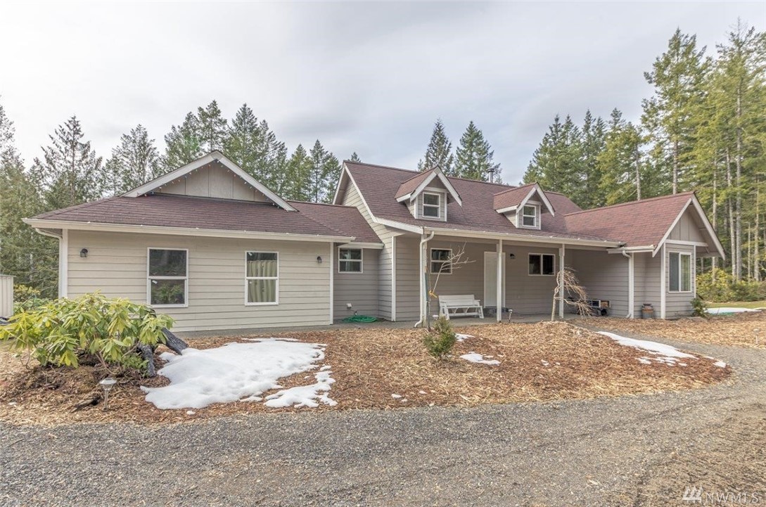 Private & Peaceful! Amazing shy 5 acres mini farm with vaulted ceiling, open concept and skylights that brighten the living space. Generous 3 bdrms and 2 bonus rooms. Kitchen with breakfast bar and stainless double range. Master suite features 5 piece master bath and walk-in closet. Large cover deck, garden area, a lot of trees were cleared to open your vision. CK school district, 25 mins from both shipyards and Seattle ferry. This home has everything that you are looking for. Come check it out