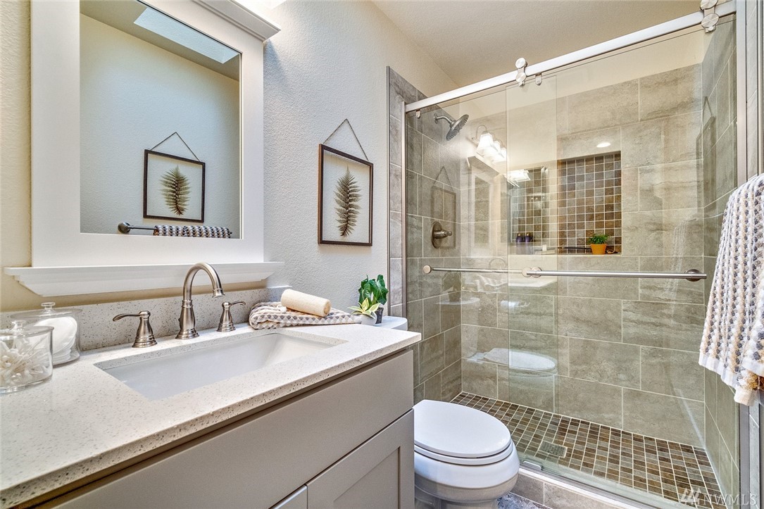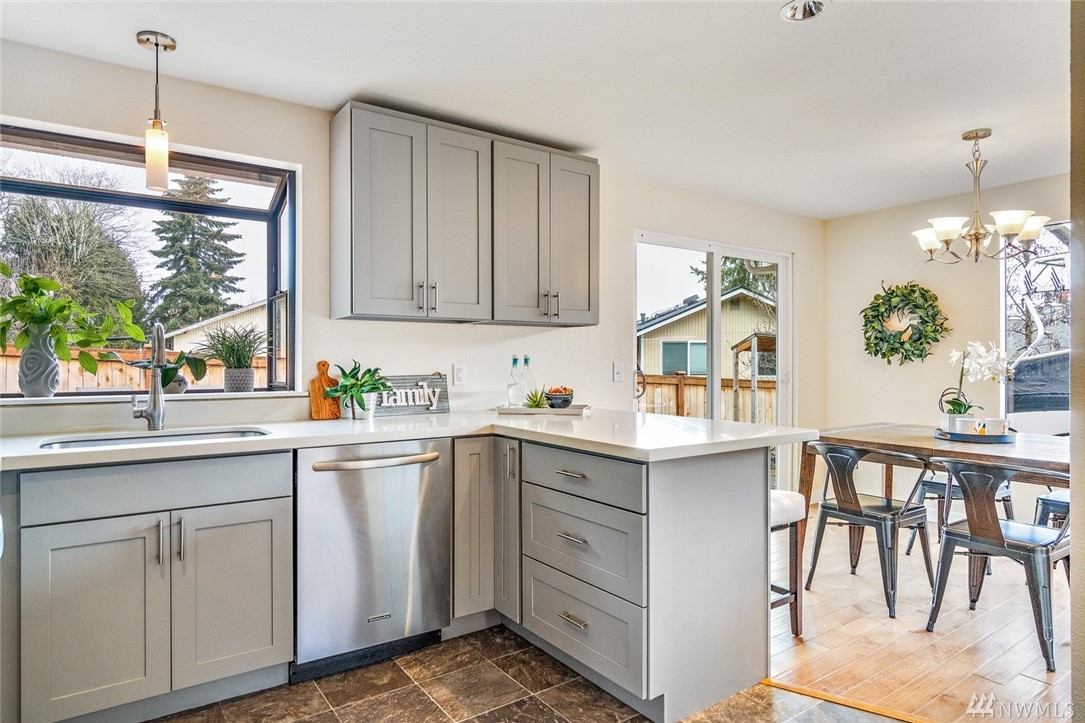 Beautifully updated rambler in desirable Finn Hill neighborhood-single story living at its finest! Nestled down long driveway in quiet culdesac on large 8K+ sqft, private lot w/ RV parking. Fantastic area close to I405, Google, Microsoft, Bastyr & Kirkland/Juanitas amenities! Light & bright kitchen overlooking beautiful deck & hot tub perfect for entertaining. Huge bay windows filling home w/ natural light along w/ brand new carpet/painted interior, master w/ ensuite bath, LR w/ wood FP in LWSD.