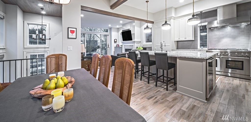 NW urban living with Park Avenue sophistication. Handsome architectural detailing crafted with obvious attention to aesthetic integrity.Gracious great room plan with dining area opens to entertainment deck.Epicurean kitchen with slab granite & Thermador appliances. Luxe master with fireplace,private deck, lake views,marble spa bath. Main floor office, lower level bonus & guest suite. 2-car garage,extra storage. 8’doors, antique-wash oak hardwoods. Walk to waterfront, parks,boutiques,restaurants.