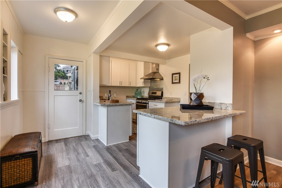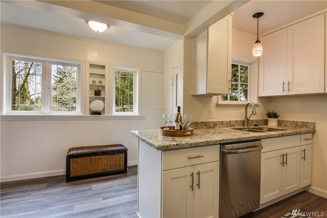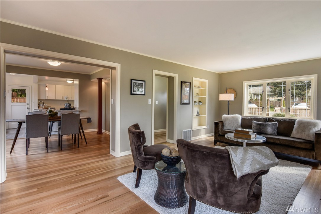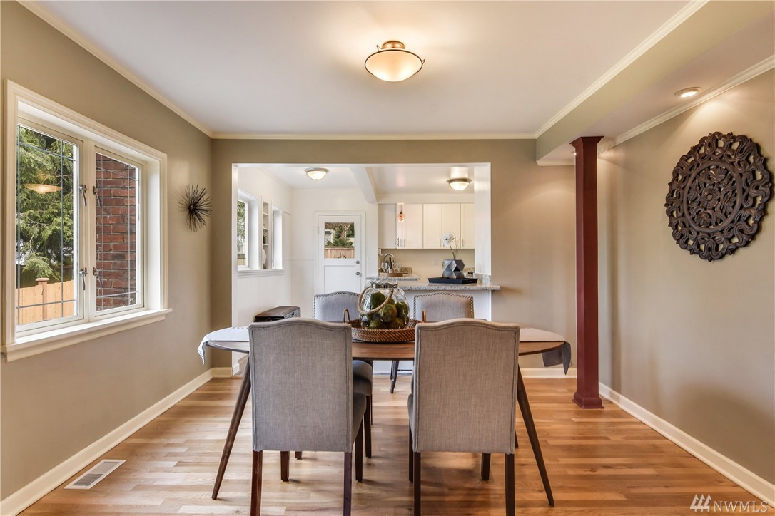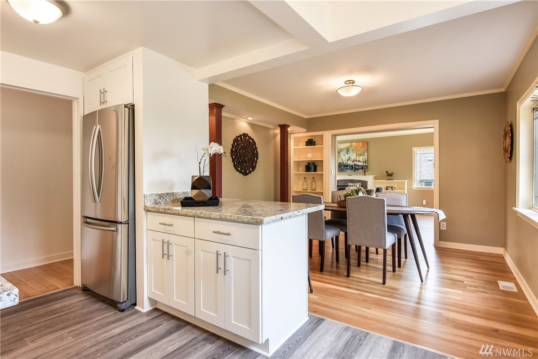 Charm meets contemporary in this move-in ready home. Wood floors flow throughout the main living spaces, accented by period details like built-in shelving, while the remodeled kitchen overlooks the formal dining room. The unfinished daylight basement offers additional storage and a work space that any craftsman would appreciate. Conveniently located a half mile from I5, Northgate Mall and mere blocks from both Northwest Hospital and North Seattle Community College, you have to see this one!