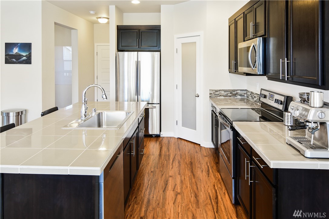 A well cared for home in the sought after Bridges Community. Open plan kitchen, flex space upstairs is sunny and views of MtRainier. Garage has a climbing wall and mats super for more play space. HOA dues of $65/mnth covers care of the front yard, nature trails, dog park, basketball and tennis courts. Close to Kent station to commute to Seattle. Costco and many stores nearby. Come see soon as this will sell fast.