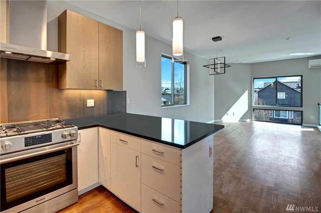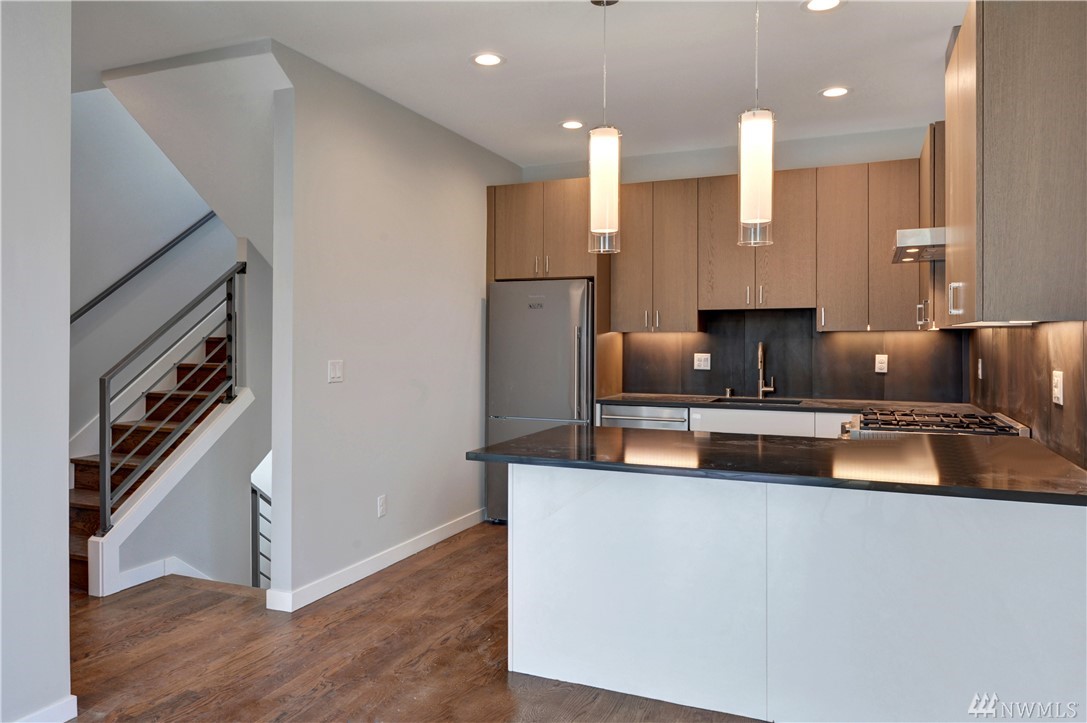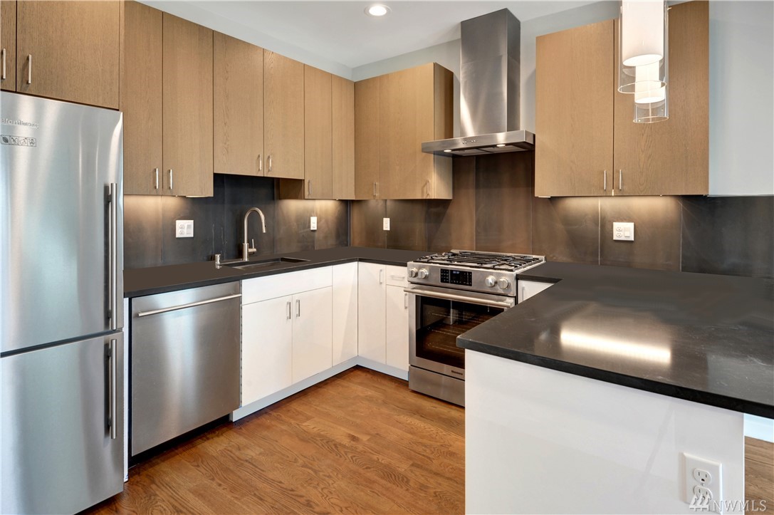 New Construction in the center of it all! Modern finishes, hardwoods, Quartz counters, stainless steel appliances. Designer tile accents. Roof top deck. Wonderful amenities within blocks, shopping dining, entertainment. Leave your car in the garage and take the bus, great commuting options to downtown: Google, Expedia, Amazon & Facebook.