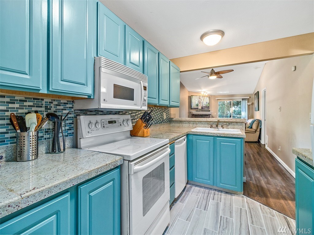 A Kirkland Gem! This wonderful condo has an excellent layout w/ two bedrooms on opposite sides of the unit with one having an attached bathroom. Unit has Granite Tile Counter tops and NEW Paint. Located just a mile from Juanita Beach and easy access onto 405, you're going to love the great amenities such as the club house, pool, hot tub, exercise room, and athletic court. No Rental Cap