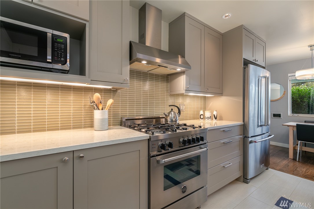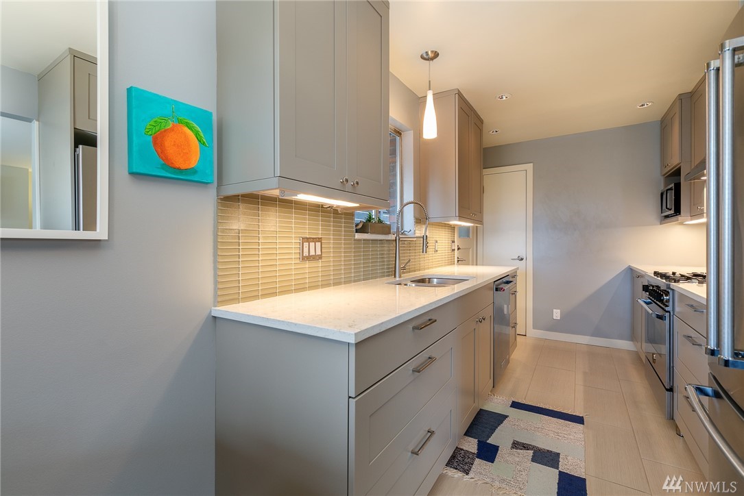 You can have it all with this remodeled brick mid-century townhouse. Located across from the Sound View park, this ideal 2 floor layout features a bright living space, dining room, kitchen, two bedrooms and a bath on the main floor. The lower level has a large rec room, bathroom and an attached garage big enough for an SUV + storage. Enjoy pristine oak hardwood floors, stylish grey cabinets, quartz counter tops and gas cooking/heat. A quick drive to DT Ballard and blocks from QFC and 15th!