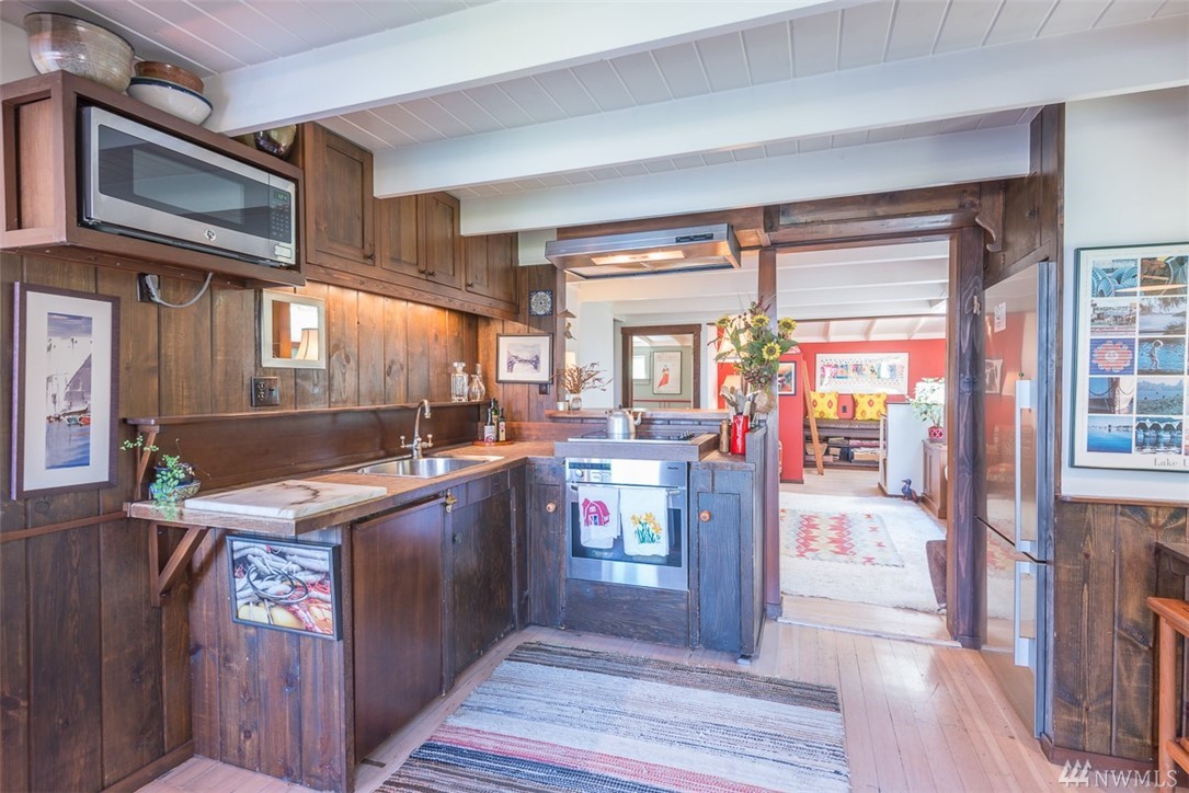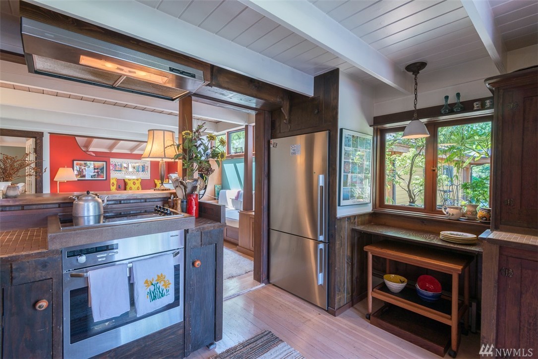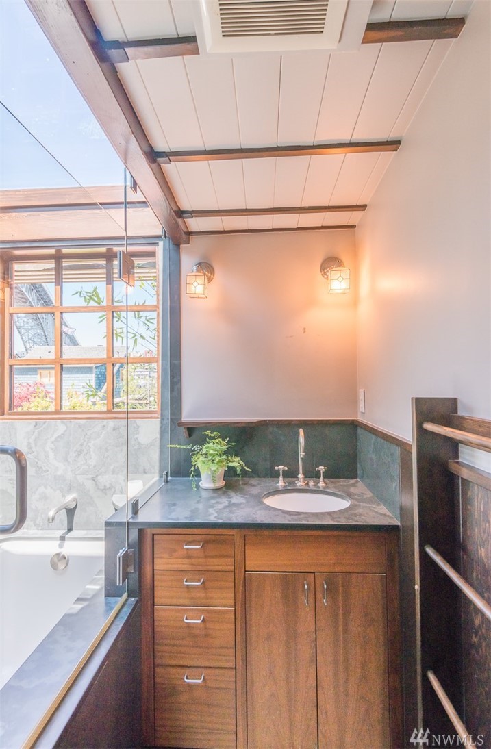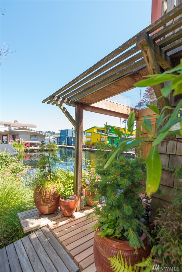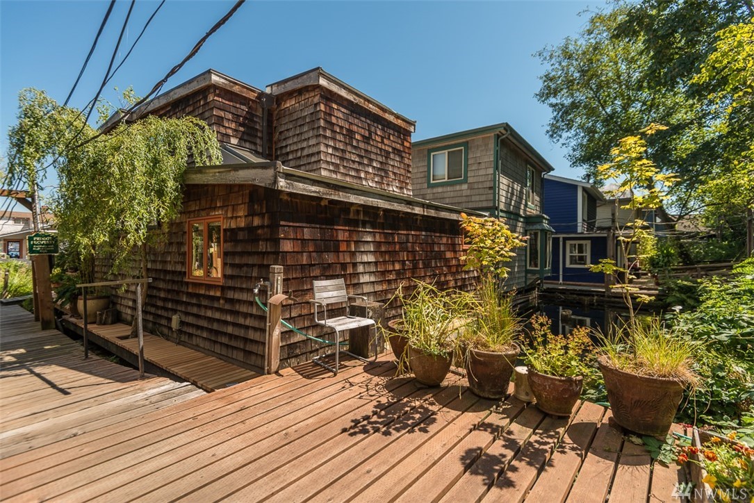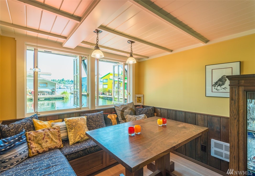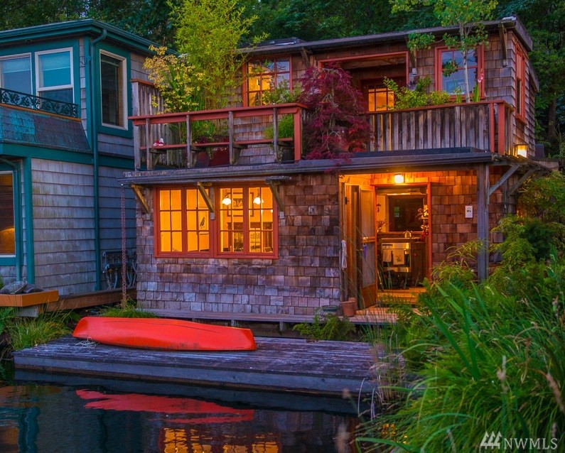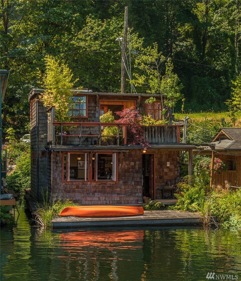 Get ready to seriously fall in Love! A combination of the most desirable types of Seattle living w/ classic Craftsman design aesthetic & detailing integrated w/ exceptional houseboat living. Gorgeous built-ins, French doors, beam ceilings, ash floors, & open plan kitchen w/ top of the line appliances adorn the main level. The ideal master suite walks out to a sequence of covered & uncovered view decks. Two parking spaces & a 20' boat slip come w/ this gem. Kayak, bike or walk to work w/ ease!