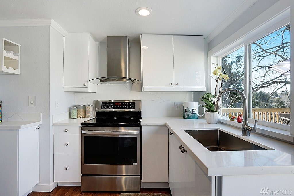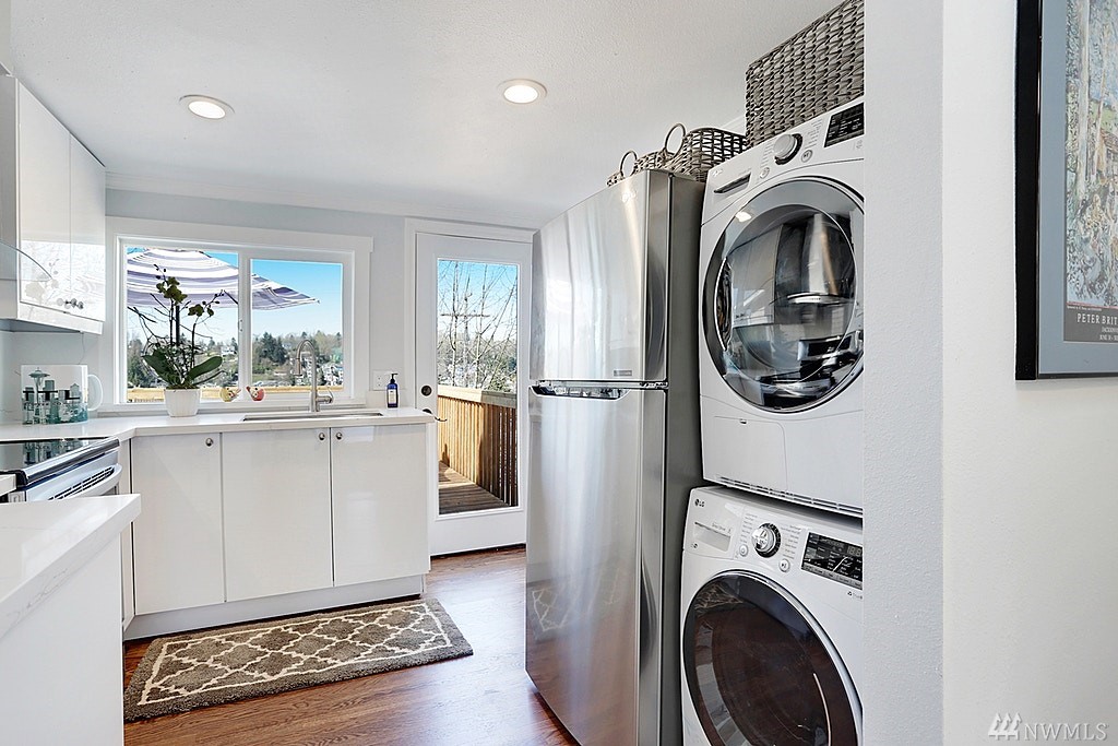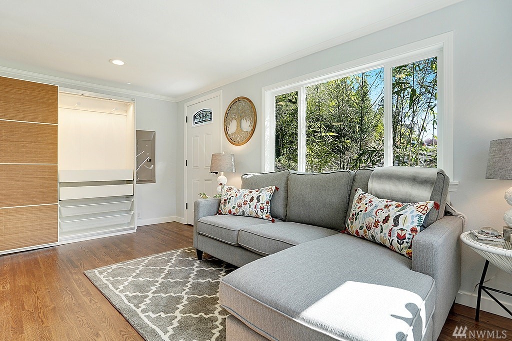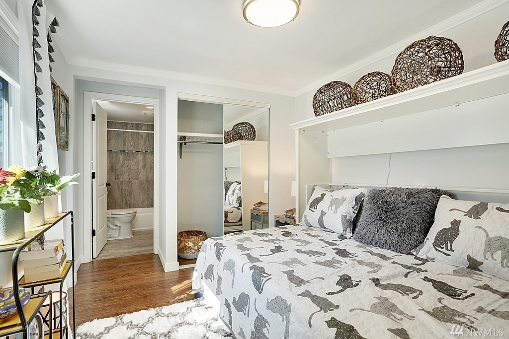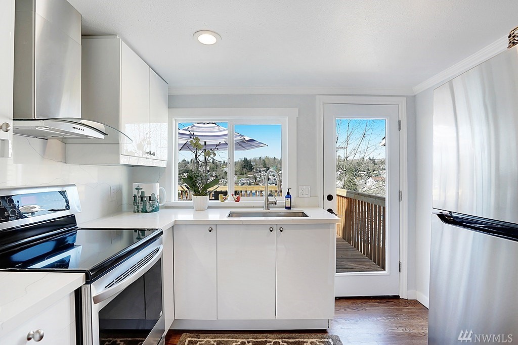 Rare, stylish, Hillman City pied-a-terre, condo alternative, small house or Air B & B. WALK SCORE 89: walk 10 min to Light Rail Station & 8 min to PCC & fabulous Columbia City! Sweet bungalow is 100% updated. Abundant natural light & oversized VIEW deck & ALL NEW finishes & appliances, hardwood floors. Lives larger than you think with new built-ins, Murphy bed, electric fireplace media center, stacking w/d. Basement w dry storage. Very private & cozy. 2+2 off st parking w sunny backyard.