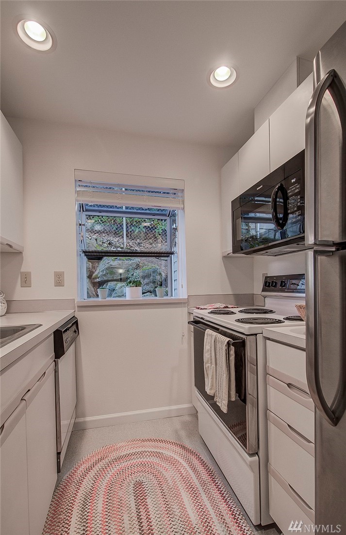 A beautiful and bright end unit located in desirable N. Beacon Hill. Living, dining room w/privacy deck and fully equip. kitchen with ez to maint. New furnishings as hard surface flooring, moisture resistant blinds, Lg. ez access shower, and low maint. tiles in the bathrm. New paint throughout. Gated commune with 1 owned pkg space in a secured garage and located mins to town-Sea,1st Hill, Hospital,library, ID, stadiums,restr, close to freeway, walking dist.to PacMed Park & award winning school.