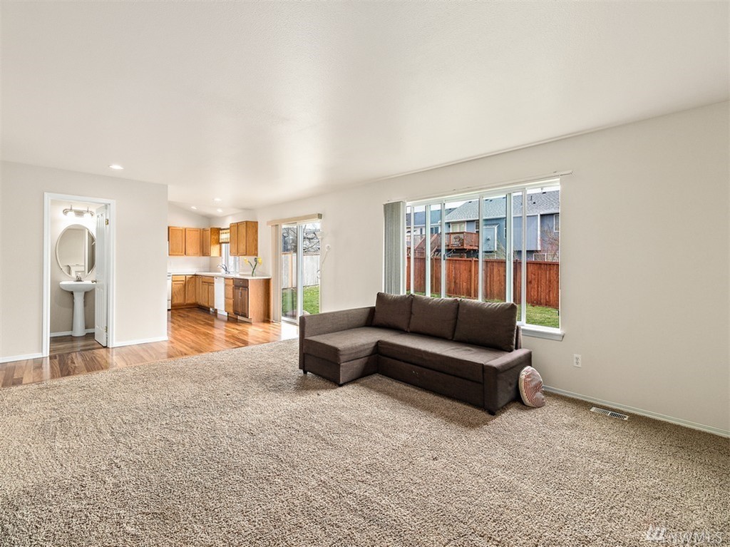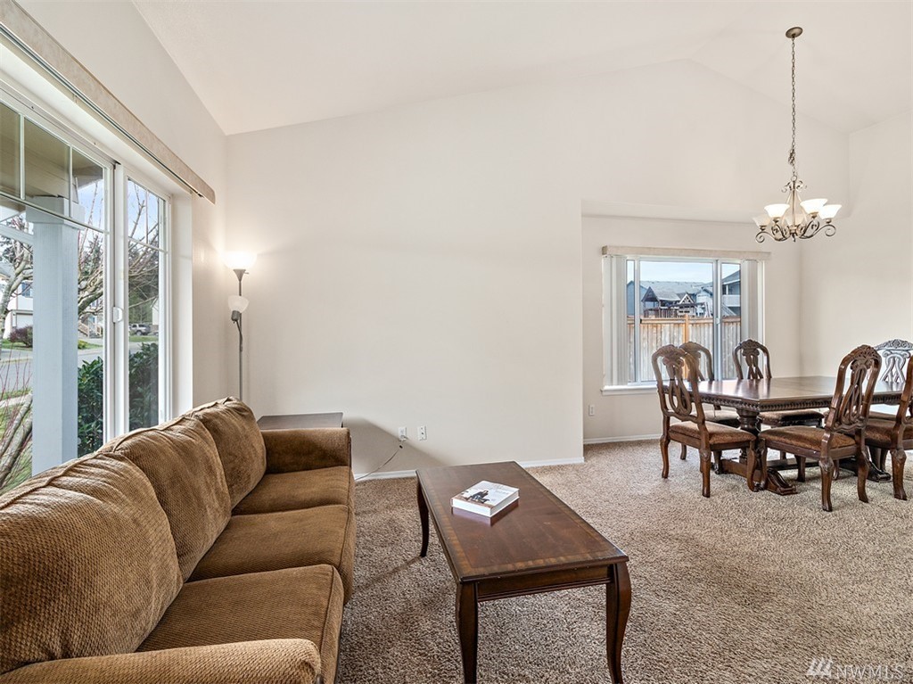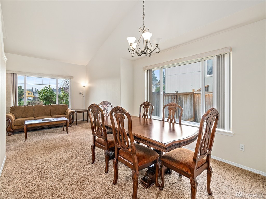 Welcome Home to this move-in ready Gem! Light, Bright, Airy & Great Flow is the theme of this home! Tall vaulted ceilings the moment you walk in, also in the Kitchen & Master Bedroom. Formal & informal living rooms w/ separate dinning room that's great for entertaining. Well maintained kitchen opens up to both the dinning room & second living room w/gas fireplace. HUGE Lot, Newer Exterior paint & Carpets top it off. Footsteps from community park, close to stores, shopping, eateries & JBLM!