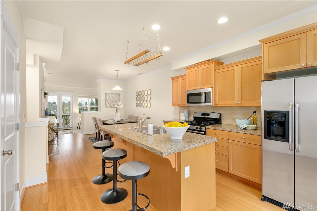 Bright & spacious 3BR townhome in thriving Columbia City! Thoughtful design features, bamboo floors, custom shelving systems, sunken living room w/ gas fireplace & French doors that open to a balcony. Open kitchen w/ center island, SS appliances, granite counters & walk-in pantry. Enjoy the relaxing master en-suite w/ Cascade views, fenced front patio, and oversize garage. Amazing location just a few blocks from LINK light rail, Farmers Market, PCC & all the exciting amenities of Columbia City!