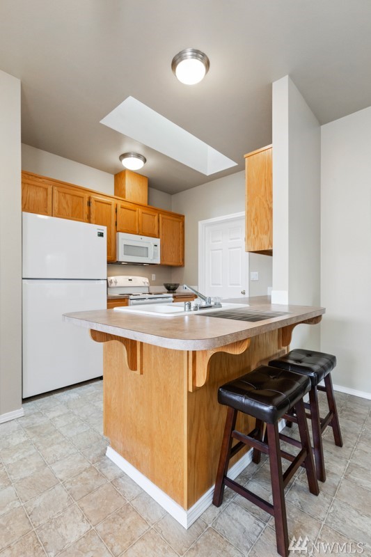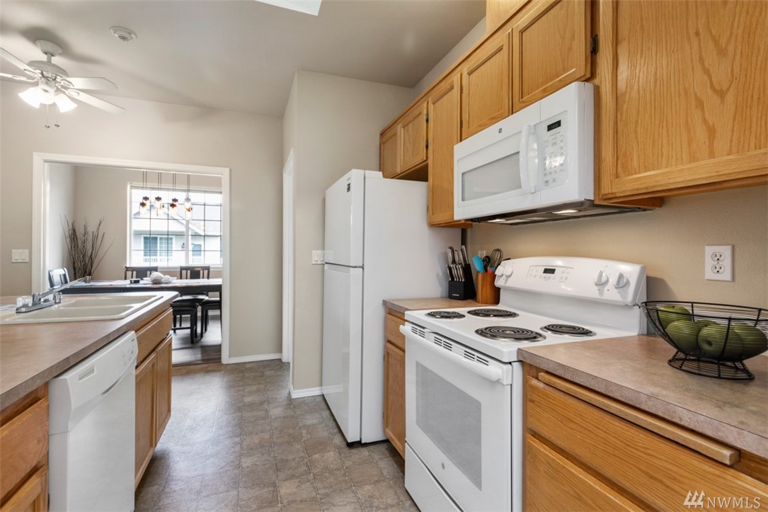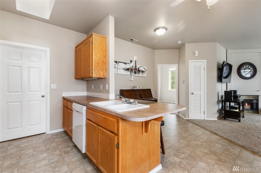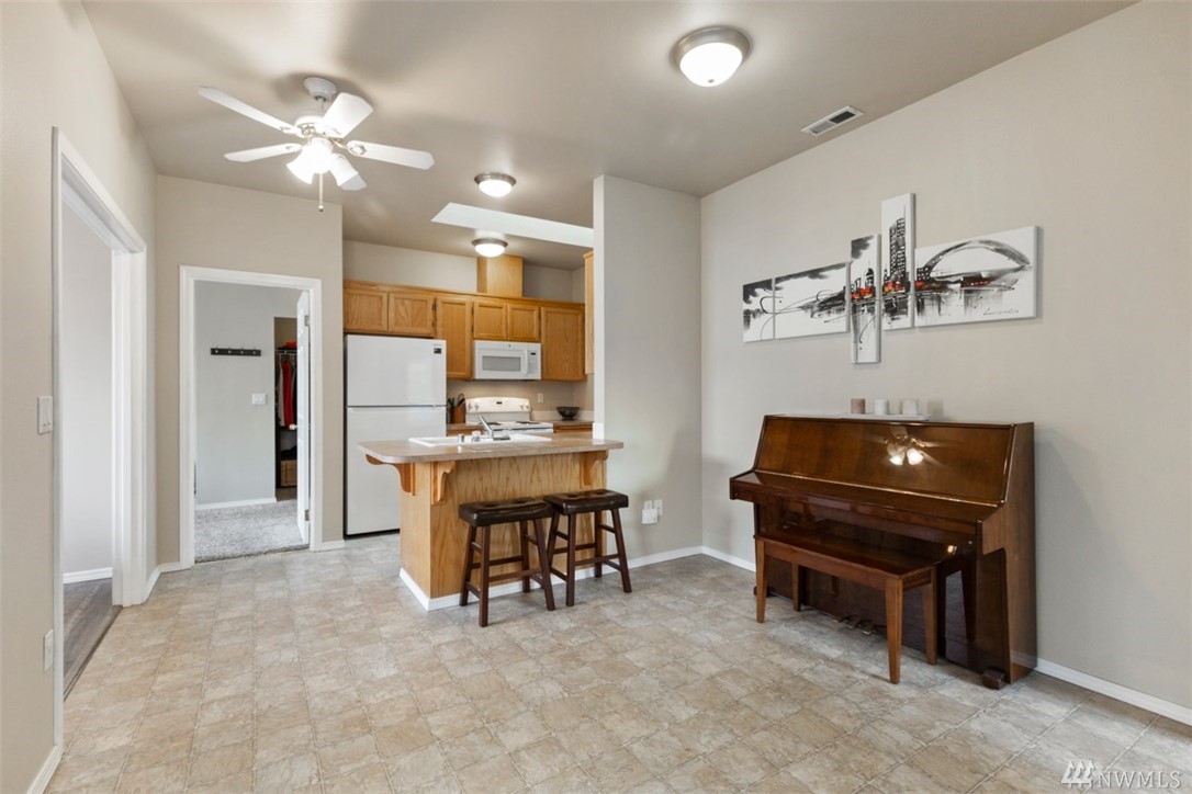 Downtown Puyallup Condo w/ a FANTASTIC floor plan! 2 bedrooms, 1.75 bathrooms- Master suite w/ walk in closet & LARGE updated bathroom including new tile flooring. Home boasts a gas fireplace & spacious kitchen w/ open floor plan. Bonus rm, office or dining rm (your choice) w/ new hardwood floors and LOTS of natural light! End unit w/ attached garage. Private balcony area facing meticulously manicured lawn makes this condo feel like a home without the yard work! Appliances Stay!
