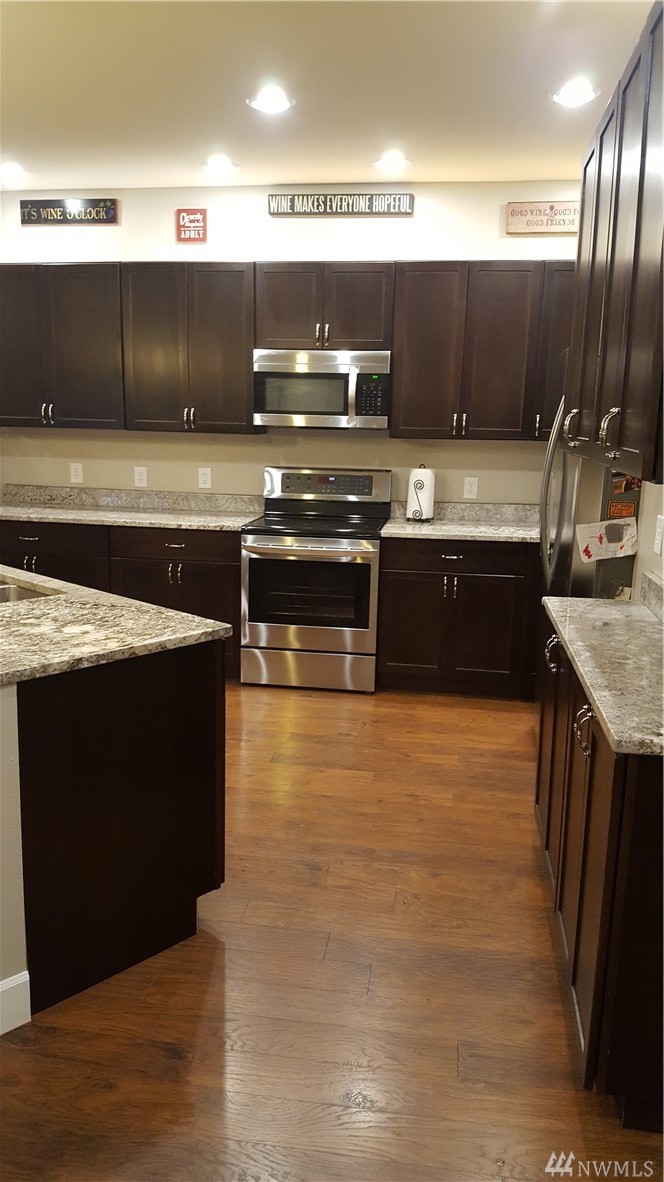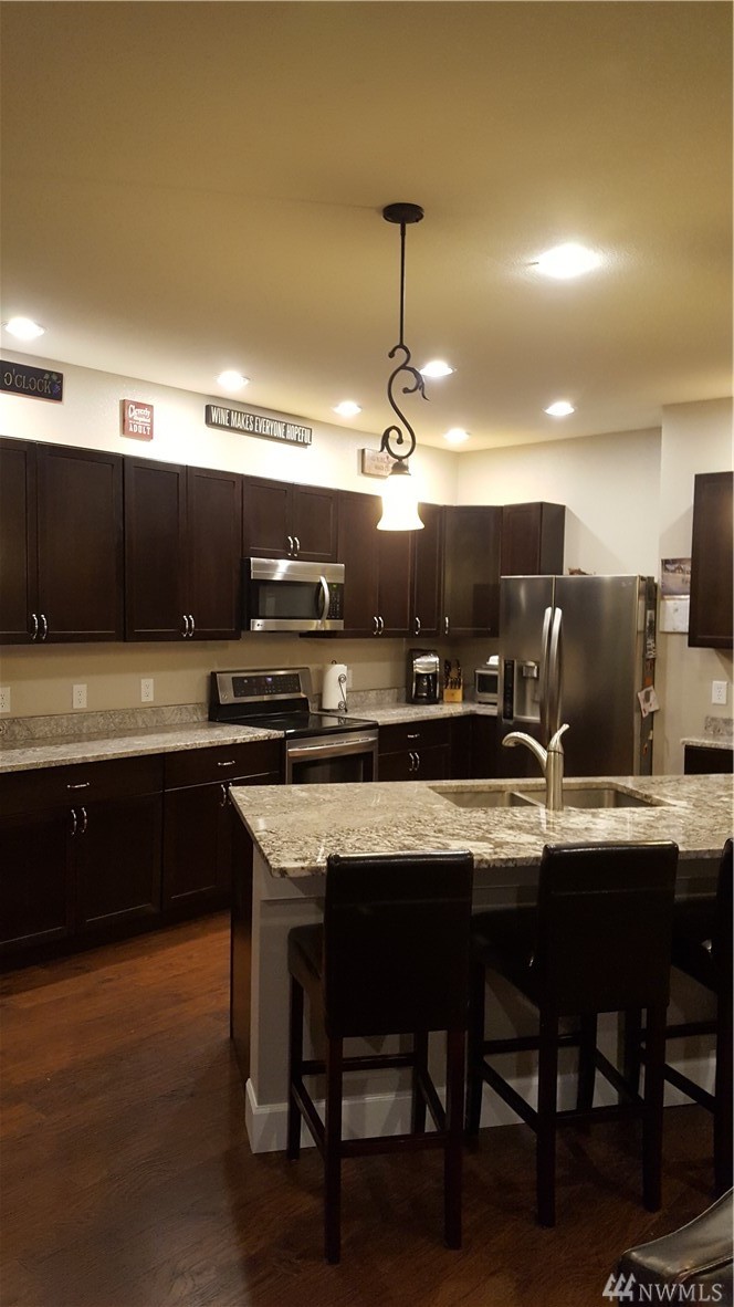 Custom home in downtown. Open floor plan, beautiful kitchen w/3cm granite counters, huge island w/eating bar, SS appliances. 9ft ceilings on main level. 4 bedrooms and util. upstairs with W/D incl. Master has huge jetted tub. Carpet in the bedrooms, made in the USA engineered wood throughout for easy clean-up. 2 car attached garage w/opener. Central AC and gas forced air keep the temp perfect year round. Shed in fully fenced back yard for extra storage. NO HOA!! Amazing neighbors on this street!