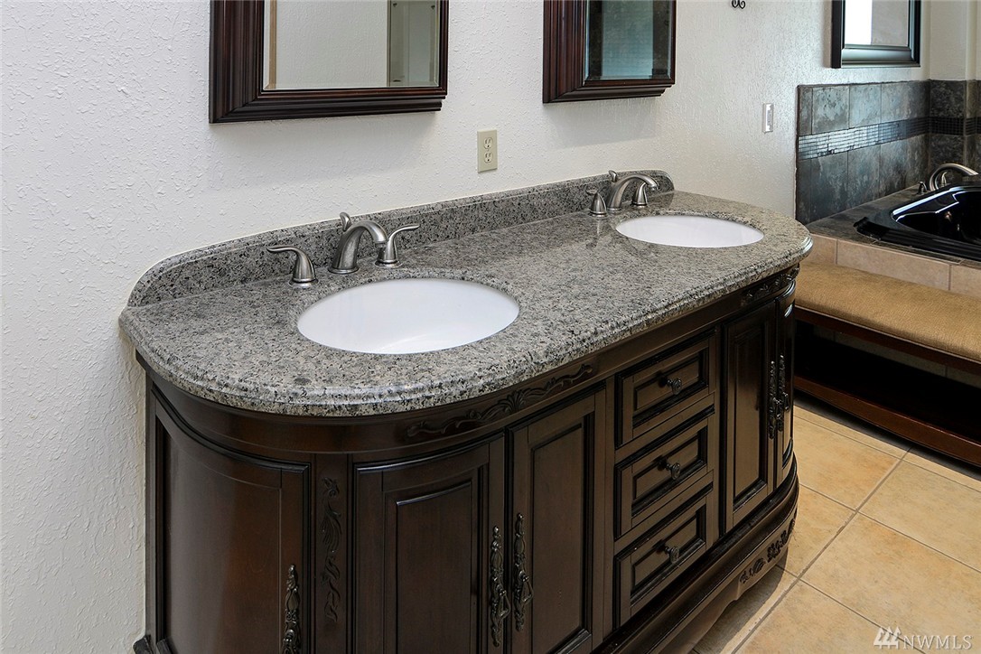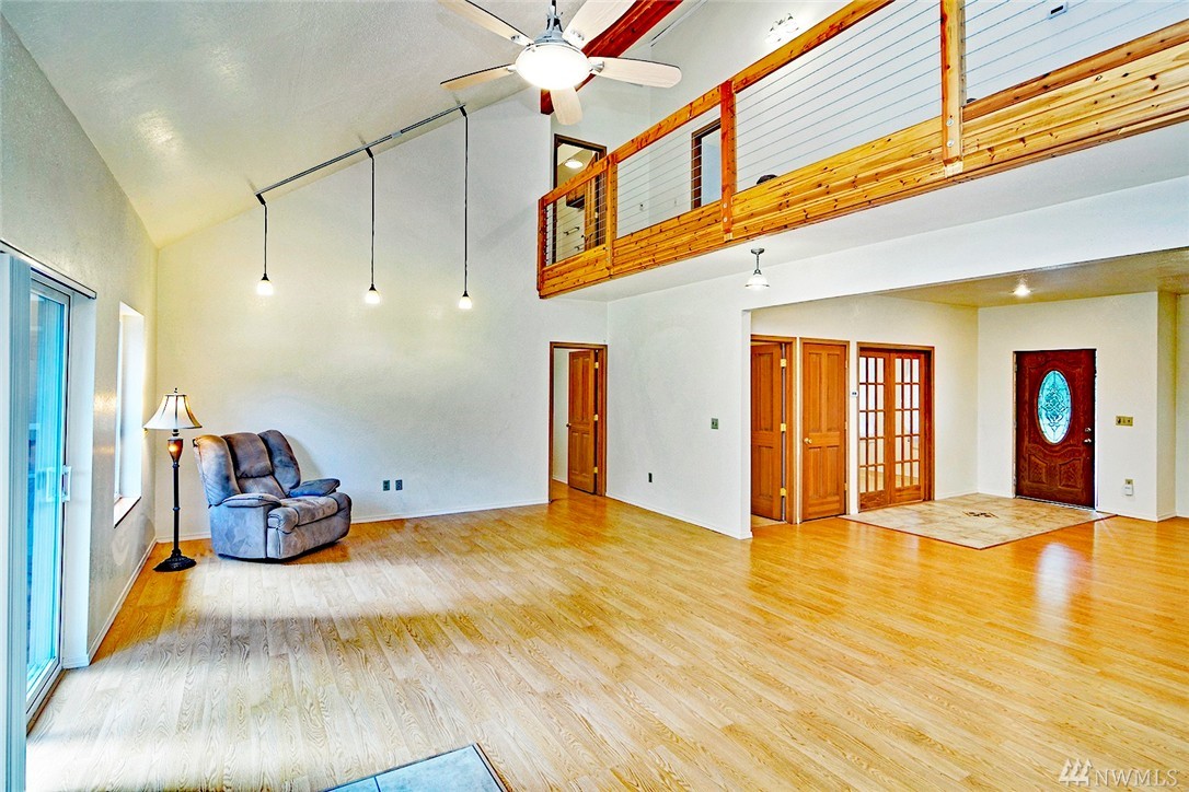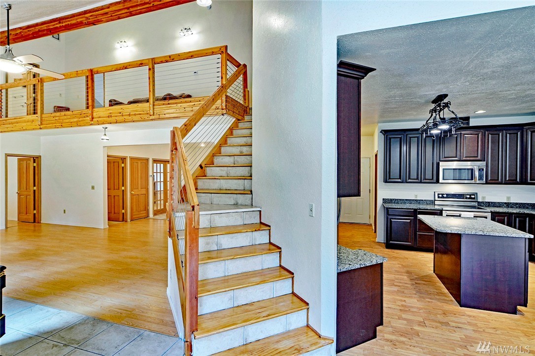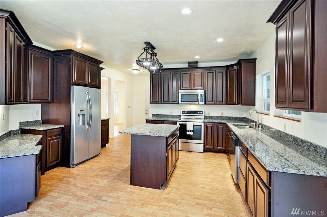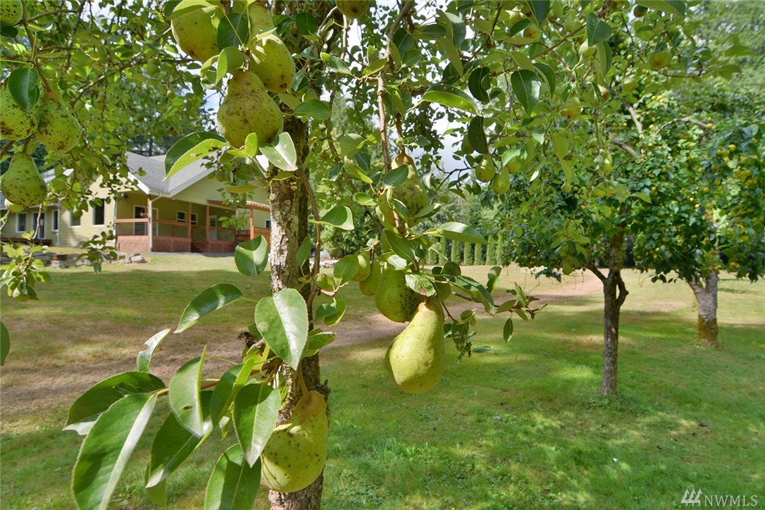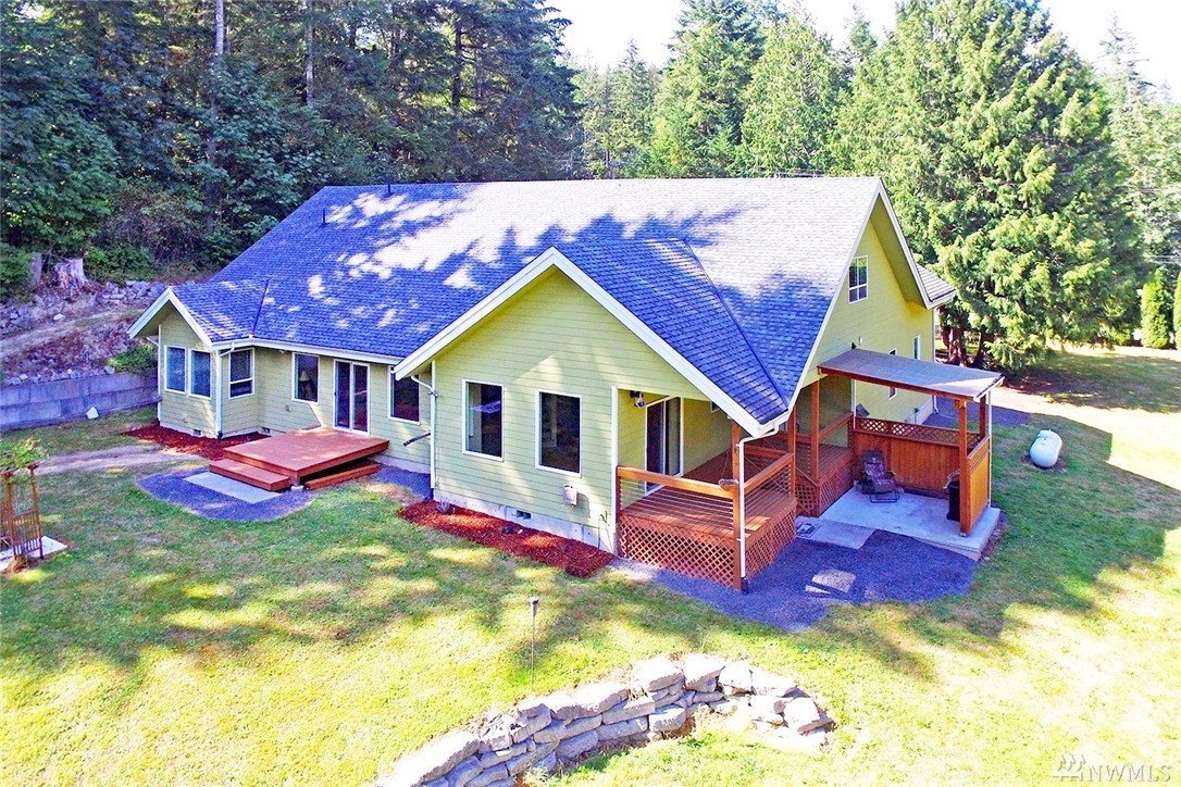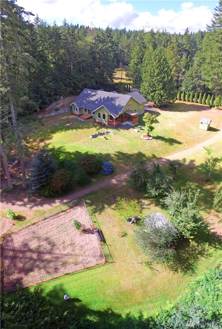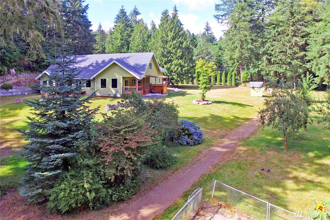 Outstanding like new home w/large rooms, several vaulted ceilings on 2 1/2 pastorial acres. Slab granite in kitchen,full extension soft close cabinet drawers plus stainless appliances. Off kitchen & family room partial is a covered deck & patio. Huge master suite: granite countered 5 pc bath (incl jetted tub very large 2-headed shower with stone and glass surround). Hydronic in-floor heat throughout. Separating the main acreage from RV parking area is a small "Babbling Brook". 2 garden areas.