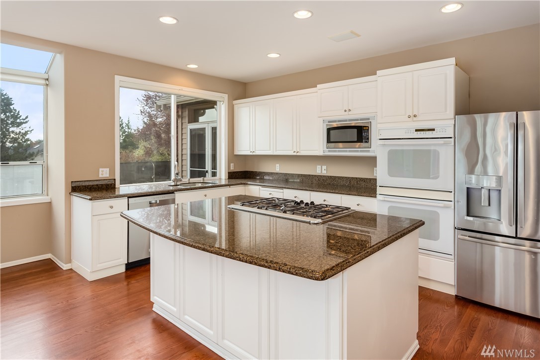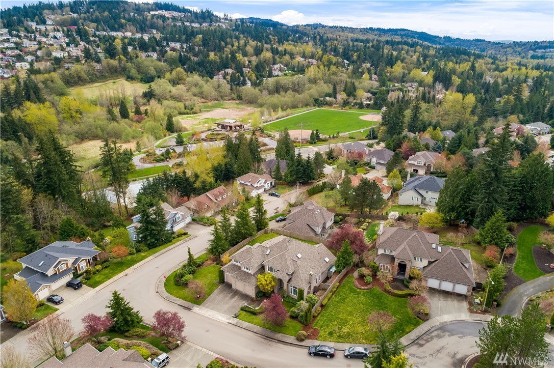 Perched on a sun drenched cul de sac, adjacent to trails & a stones throw from Lewis Creek Park, is this stunning two story home in Lakemont Highlands. High ceilings, rich hardwoods & classic spaces make for an easy flow. Master on main, office, formal & informal spaces. Open kitchen w/slab counters & stainless appliances. Family room w/fireplace flanked by built-in's. Large level & private yard. 3 additional bedrooms, bath & oversized bonus up. 4 car garage, Mt. Rainier views & so much more! .