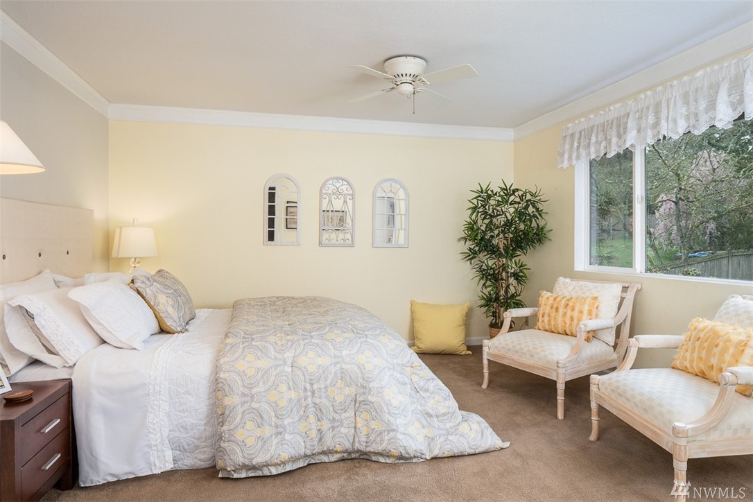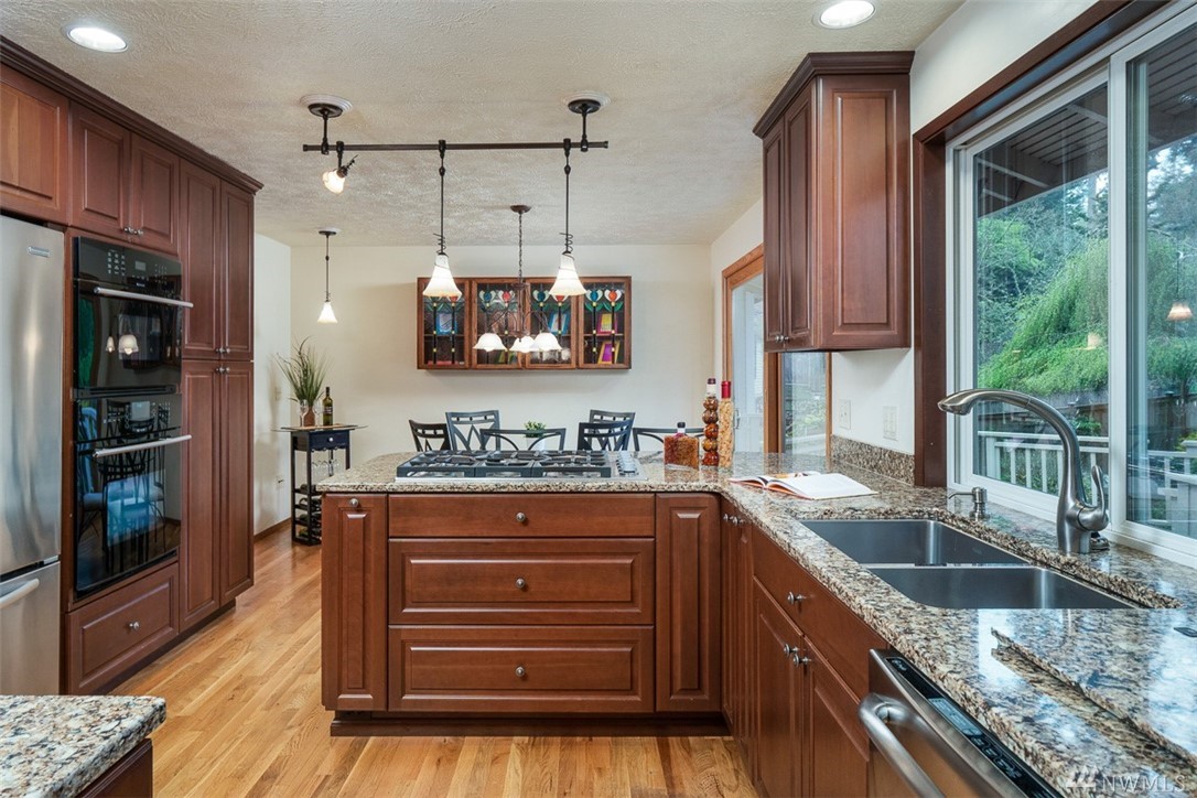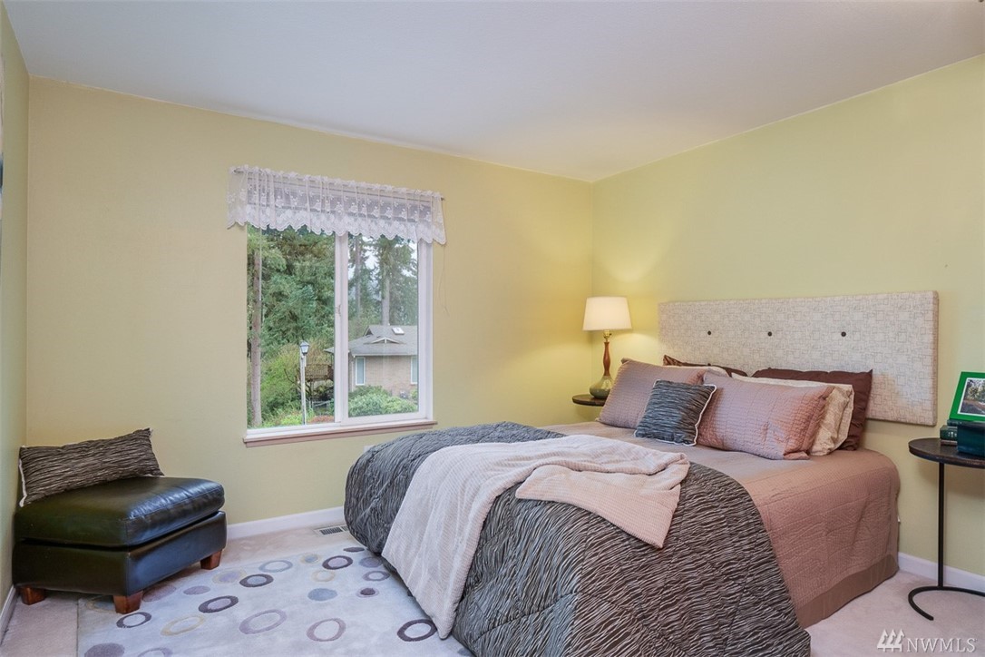 Beautiful 4 bed 3 bath home in East Bellevue's exceptional Crestwood Park. Stunning NW Contemporary vaulted cedar ceiling, Quartz & SS Custom Chef’s kitchen, Cherry cabinetry, pull out pantry. Real Hardwood flooring. Master Suite w/ dual sink granite counter top, oversized shower. Large entertainment deck. New Roof. Private yard. Award winning Spiritridge elem. Walk/Bike trails, boat launch, beach nearby. 20 minutes to Seattle. Secure your place in Bellevue with this fabulous home and location.