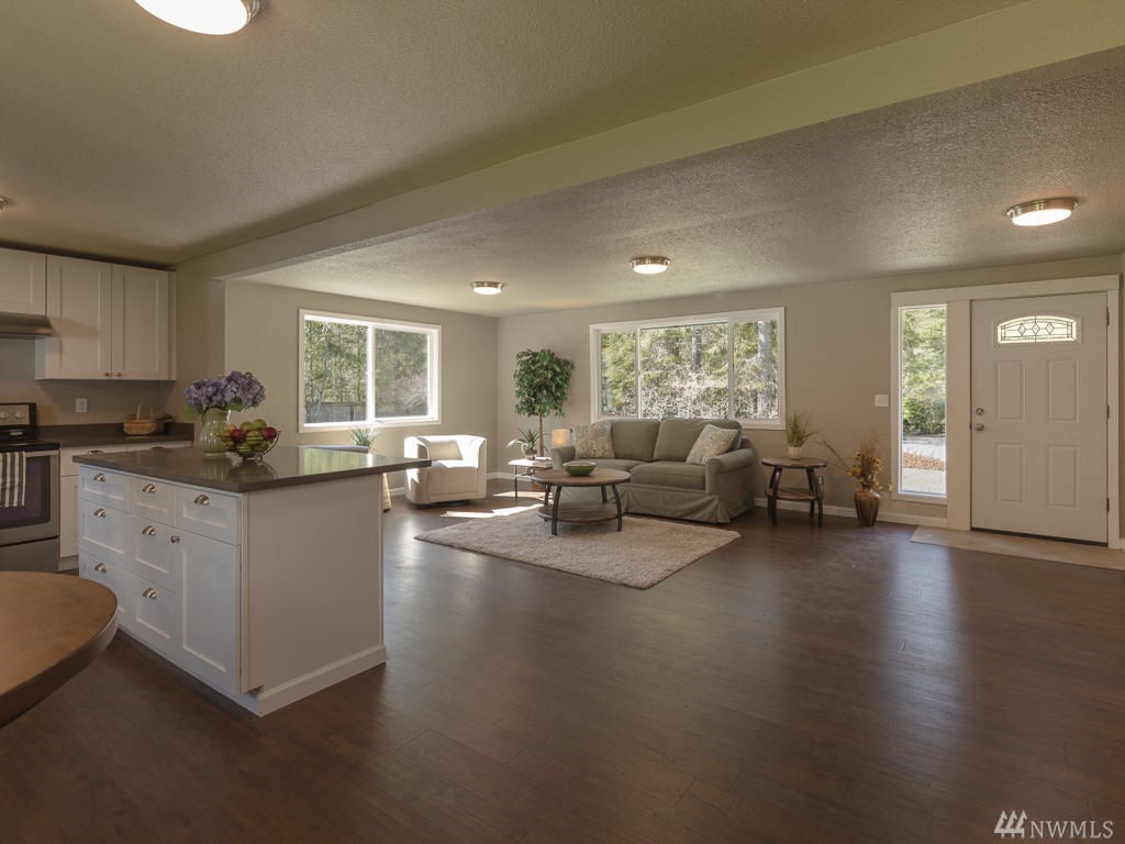 Updated rambler on 5.97 acres in a peaceful country setting just minutes from Key Center. Updates include: new roof, new flooring & new paint inside & out. Kitchen updates include: quarts countertops with new cabinets & new appliances. Bathroom updates include quartz countertops, new cabinets & new tile work. Also a new electrical panel. Detached one car garage with one car carport. Property also features huge yard, sport court & green house. Only second owner, was at one time a small farm.