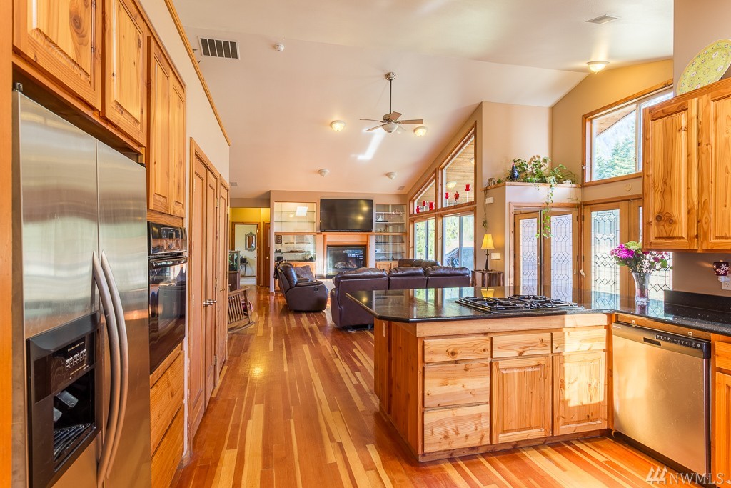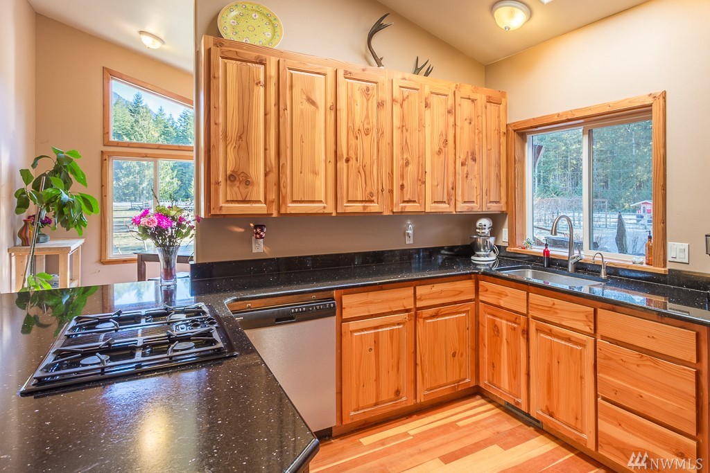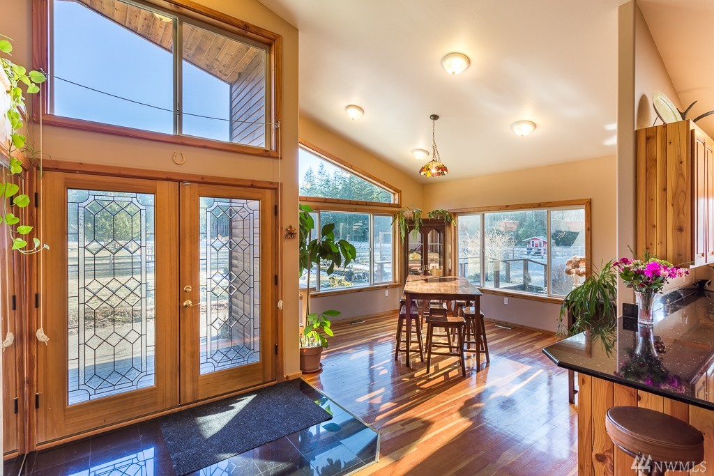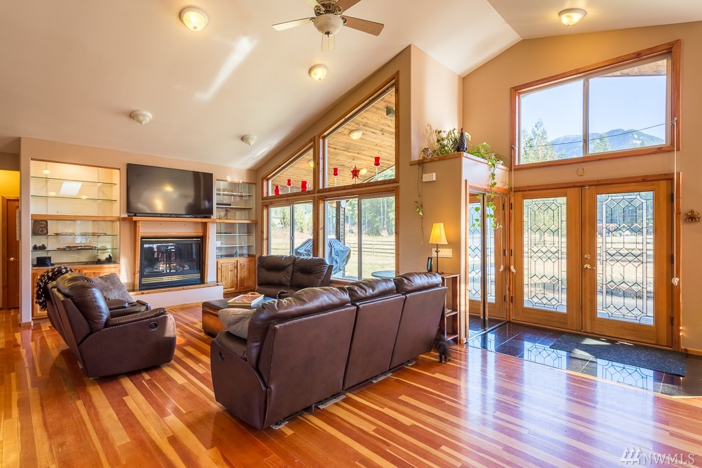 Zero light pollution atop the hill on your prvt 5 acres of beautiful level property! Beautiful Ranch Home adorned with rustic charm & just minutes from SR2 in the heart of Gold Bar! Featuring a Koi pond, irrigated gardens, fire pit, 3 lrg pastures and a small barn. Over 2700 SF of home w/4 lrg BRs and 2.75 Ba, 2 living areas and vaulted ceilings! All interior mill work including floors are fir/softwood from the property. Over-sized garage and additional covered RV parking. Just wow!