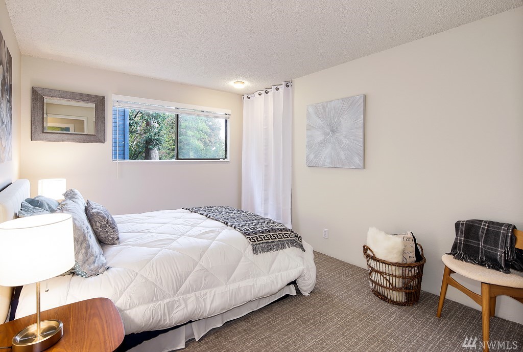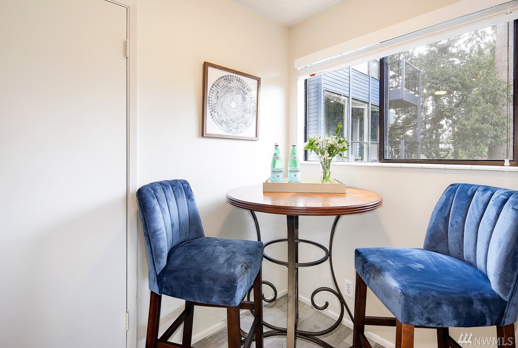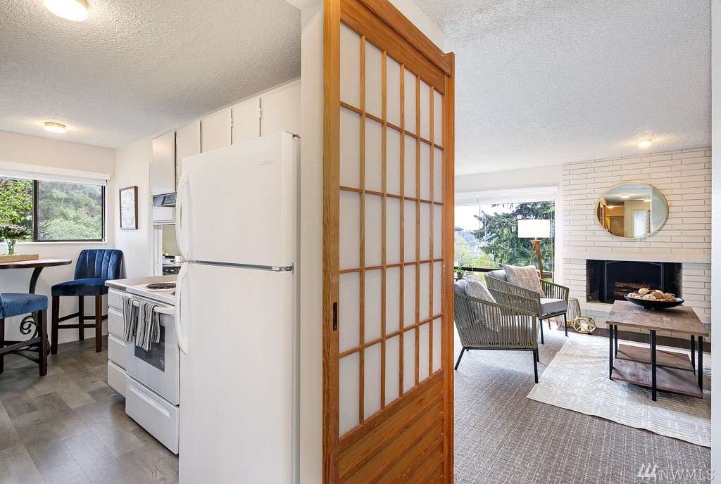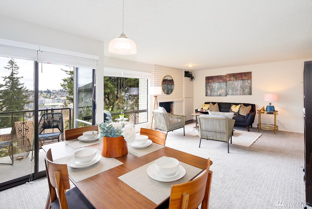Must see, bright and charming Magnolia east facing condominium with territorial and mountain views in outstanding neighborhood. 2 bed, 1.75 bath level entry. Brand new carpet and flooring throughout. Kitchen has eating nook, large pantry and W/D. Open living and dining room share wood burning fireplace. Hardwood floors in master. Both bedrooms have large closets. 1020 sf end unit with low HOA and 2 tandem parking spaces. Close commute to downtown Seattle, bike trails and bus lines.