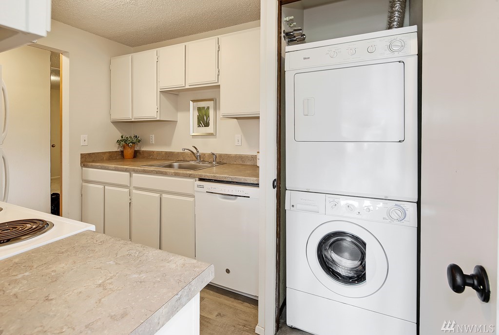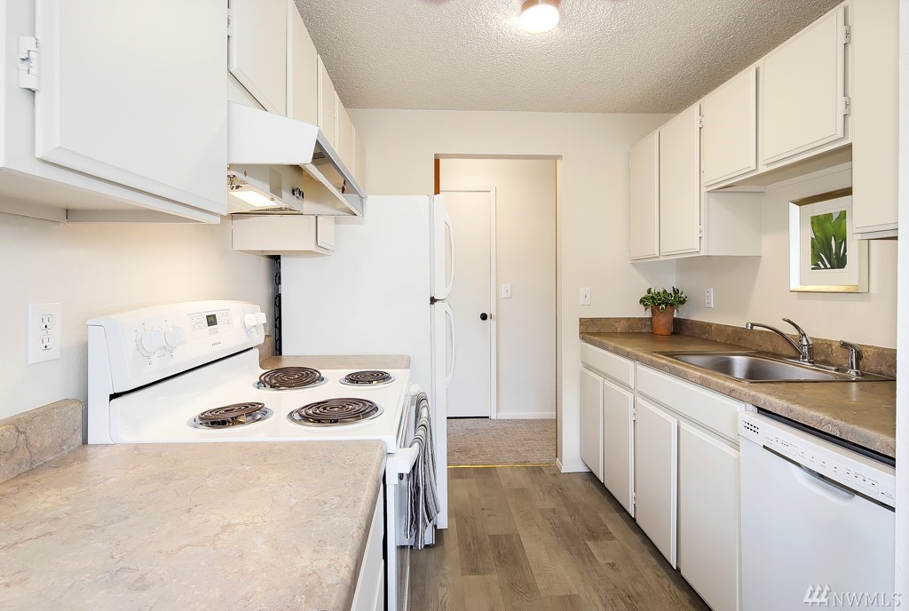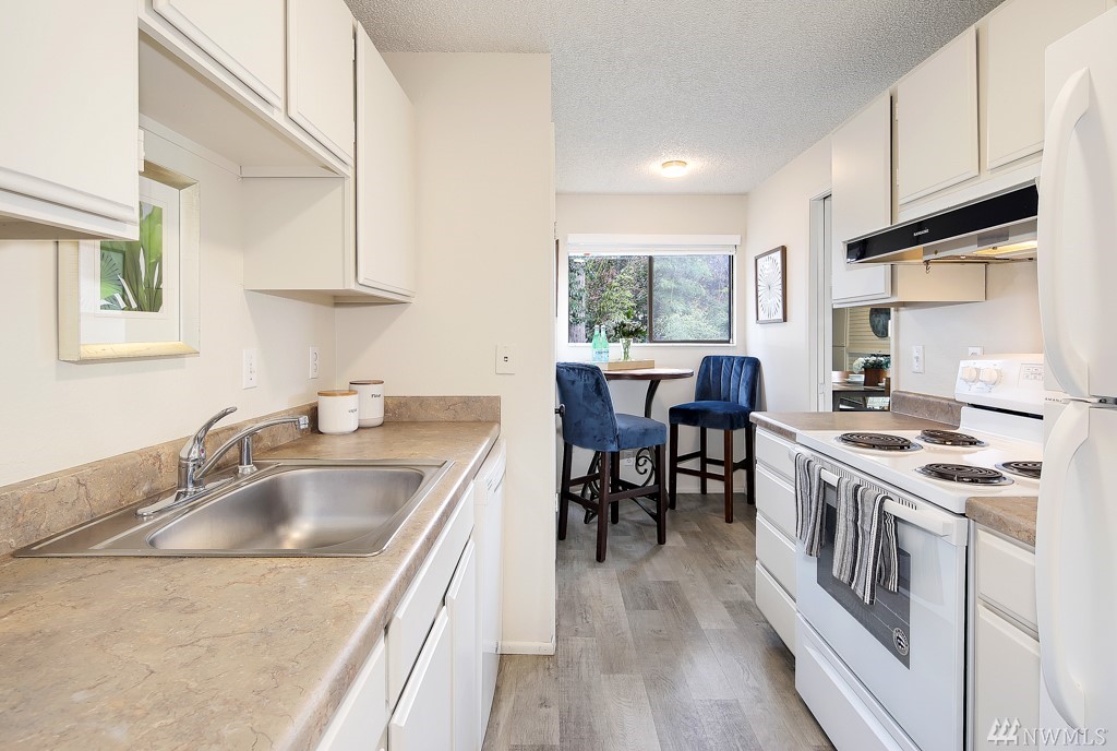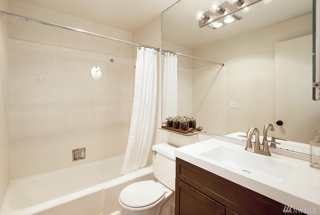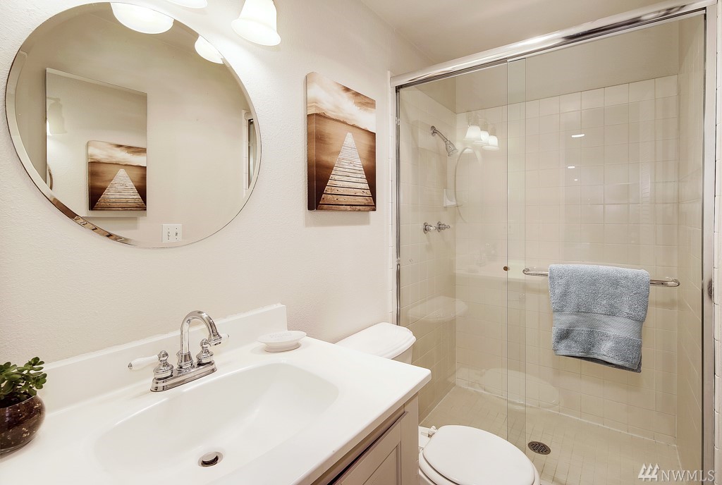Must see, bright and charming Magnolia east facing condominium with territorial and mountain views in outstanding neighborhood. 2 bed, 1.75 bath level entry. Brand new carpet and flooring throughout. Kitchen has eating nook, large pantry and W/D. Open living and dining room share wood burning fireplace. Hardwood floors in master. Both bedrooms have large closets. 1020 sf end unit with low HOA and 2 tandem parking spaces. Close commute to downtown Seattle, bike trails and bus lines.