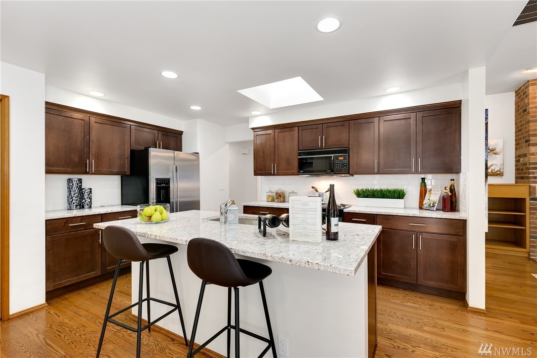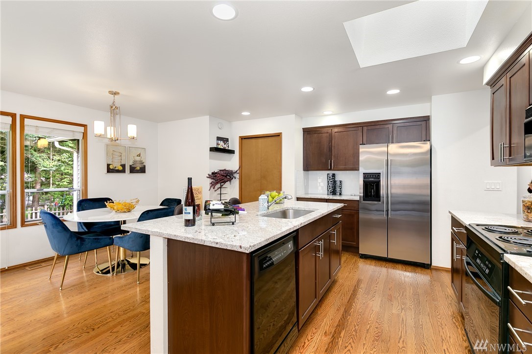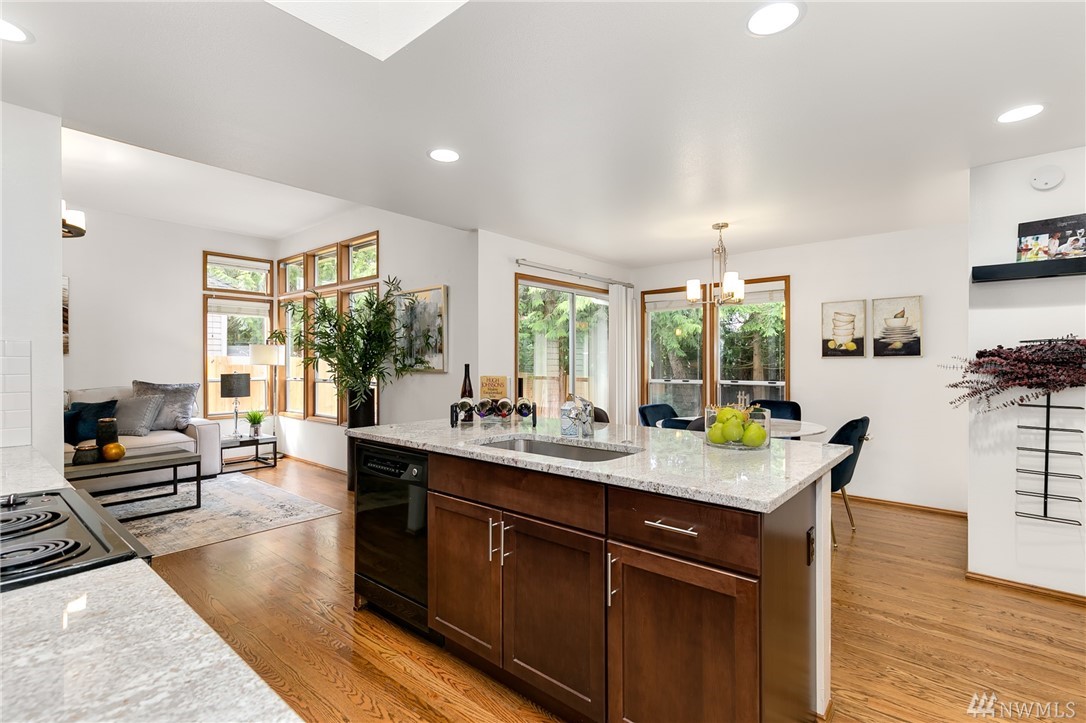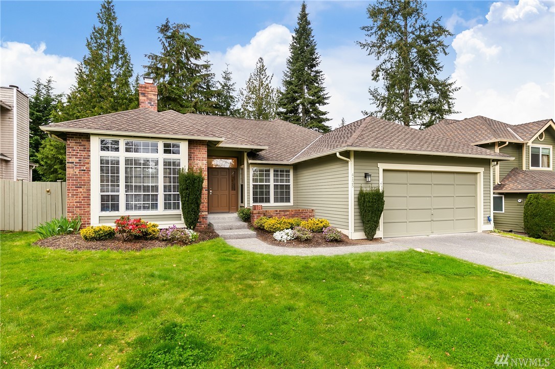 Updated single level home in quite neighborhood w/convenient access to I90, shopping & restaurants, public & Issaquah SD transportation. The house welcomes you w/high ceilings, lrg windows & skylights throughout. Updated kitchen w/granite counter tops & eating nook, faces a living room w/fireplace & a private, spacious & fenced backyard. Flowing floor plan, features a separate living rm w/gas fireplace, dining & beautiful master w/SPA style bathroom, 2 add'l bdrms & updated bath. Newer roof.