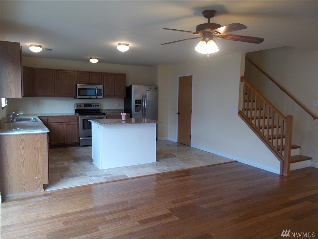 Come inside to warm, engineered hardwood floors to the great room. Stainless steel appliances stay in the expansive kitchen with a pantry. All 3 bedrooms have a walk in closet & large windows. The master bedroom is large enough for a king size bedroom set. An oversized tub shower, separate toilet, linen closet & walk in closet complete the master bath. Large fenced back yard includes a gated space for a dog, hammock stand & access to the front yard. Close to freeways, Olympia, JBLM, & Tacoma.
