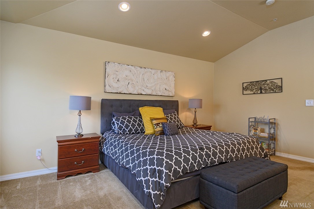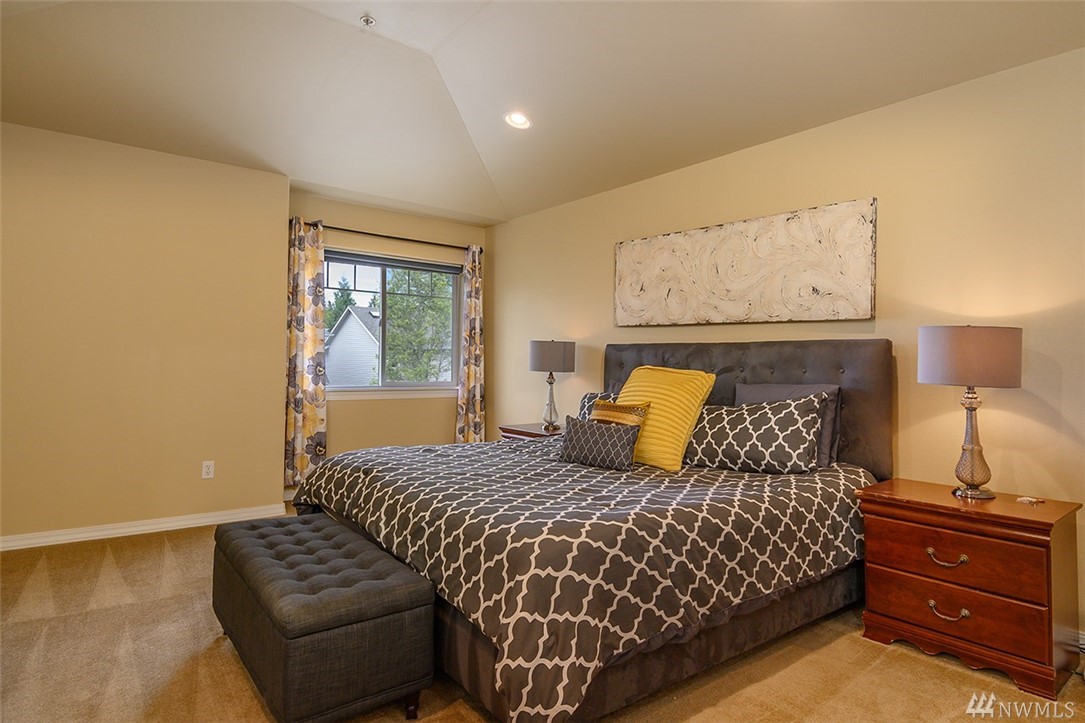 luxurious master bedroom with vaulted ceiling, huge walk-in closet and 5 piece master bath. Attached