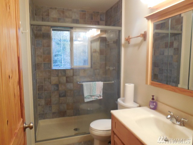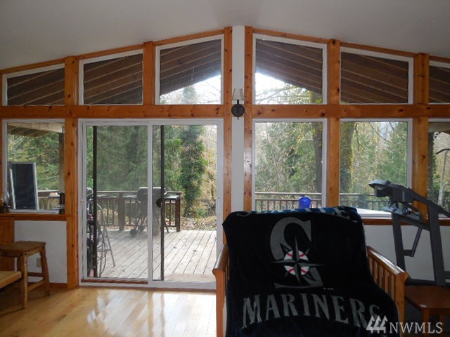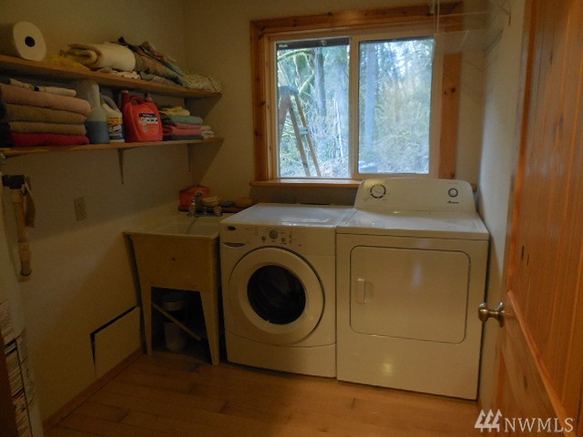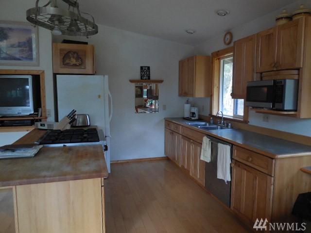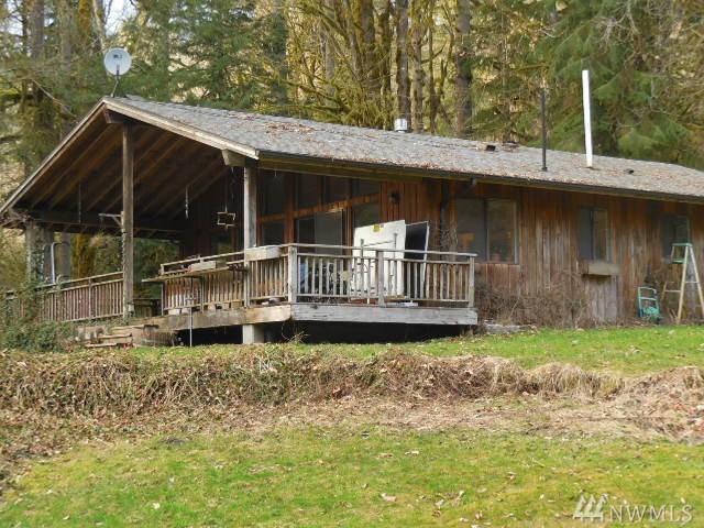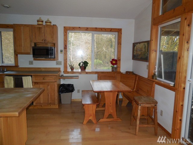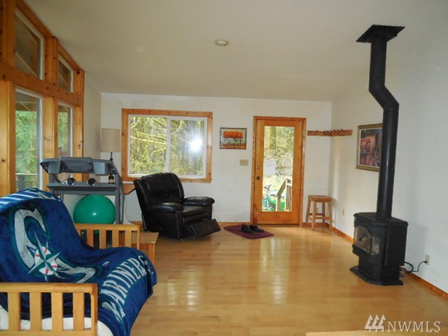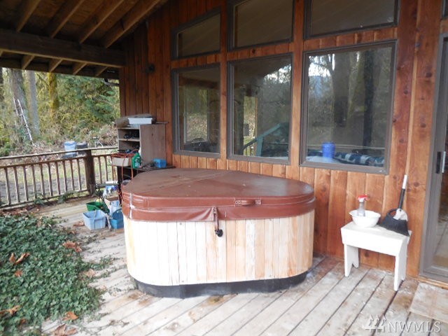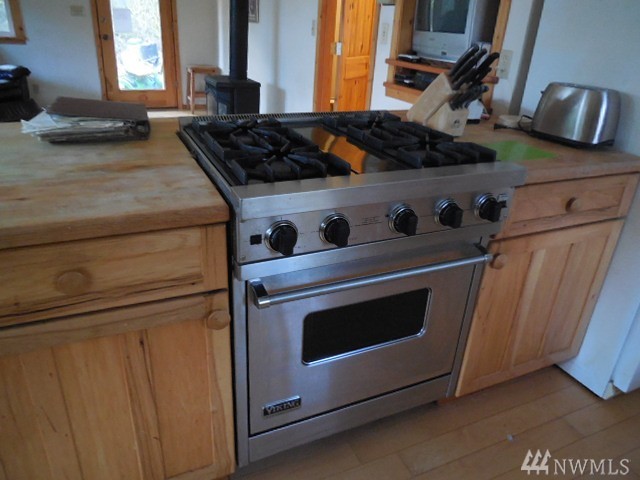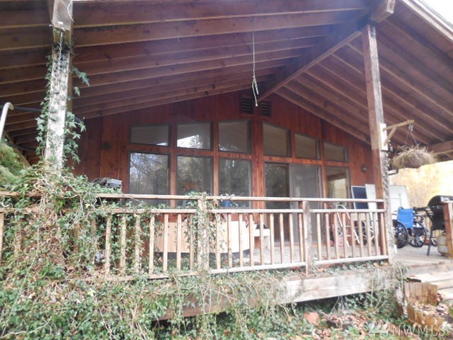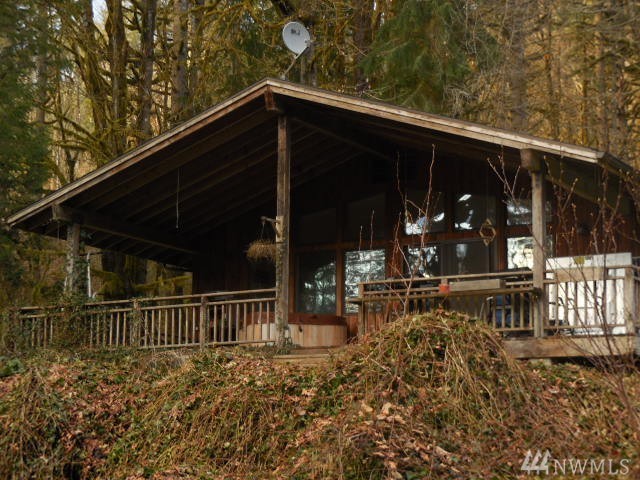Custom built 2 bed rm. 1 bath home set on 5+ AC. with a creek down one side.Large covered patio deck with a hot tub. Maple floors inside sliding glass doors. Custom built cabinets, wood trim, butcher block counter tops, Viking stove, open floor plan, large windows for the view, Picture perfect setting in the woods. Older shop/shed set down from home. Lot gently sloped and terraced. only 3 homes on dead end street
