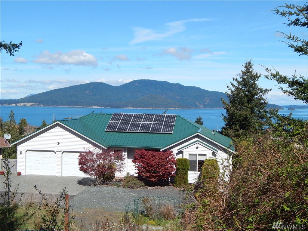 Welcoming entry draws you into the great room & the incredible views of the San Juan Islands, Rosario Straight & surrounding mountains. Relax & take in the views on the newer composite deck with cable inset railings. Well appointed kitchen with plenty of cabinets, granite counters & stainless appliances. Main floor Master Suite. Den or 3rd guest bedroom. Spectacular view from the lower level along with 2 more bedrooms, family room & full bath. Walk to Cranberberry Lake & Marina. Bike to ferry.