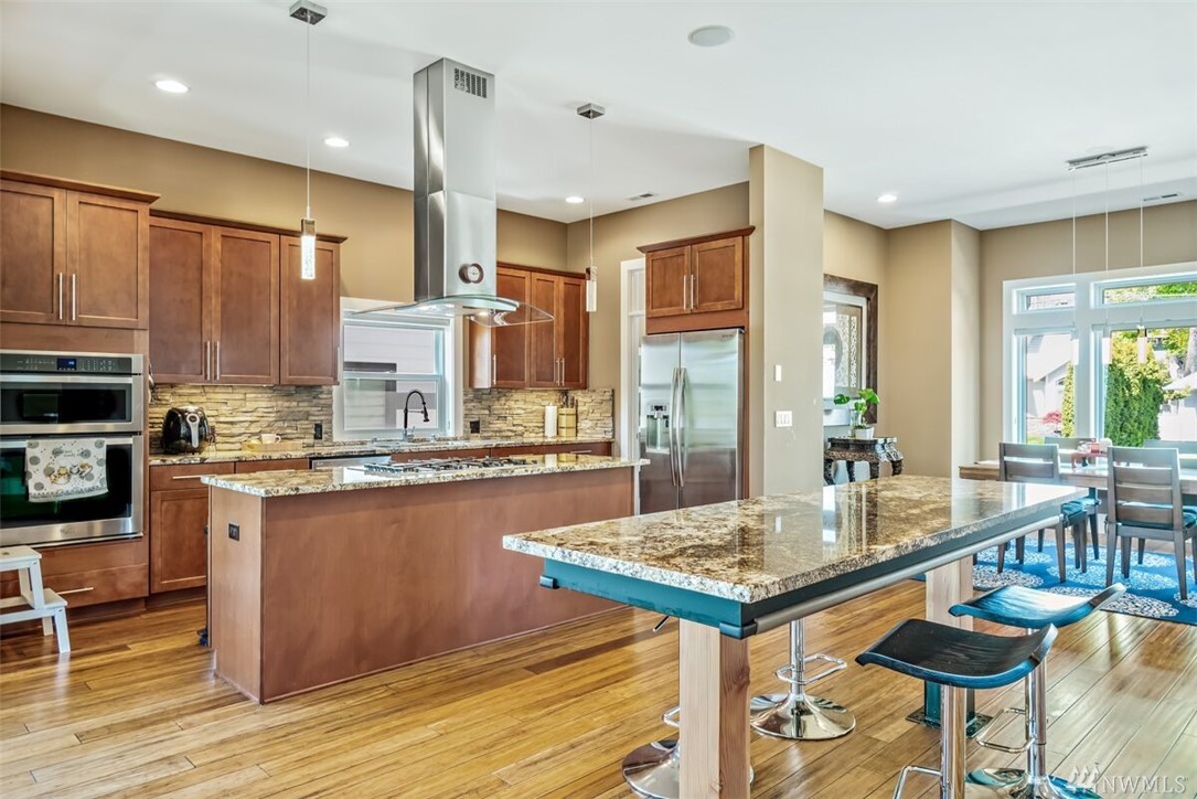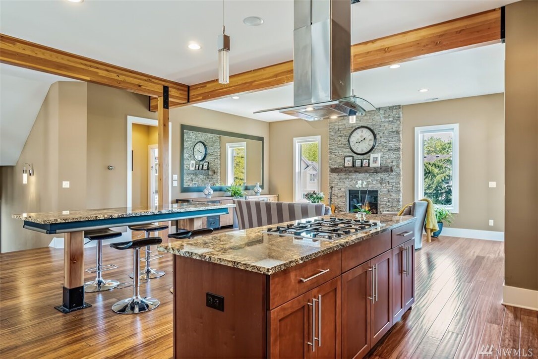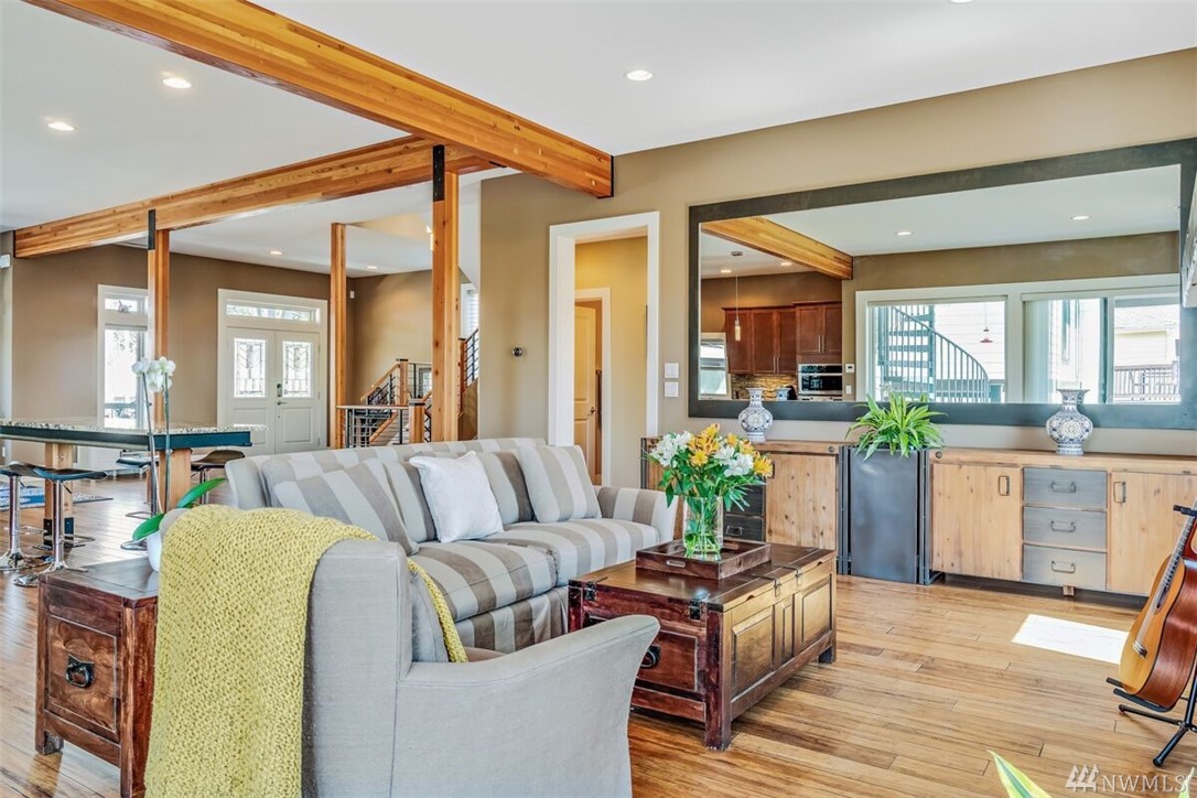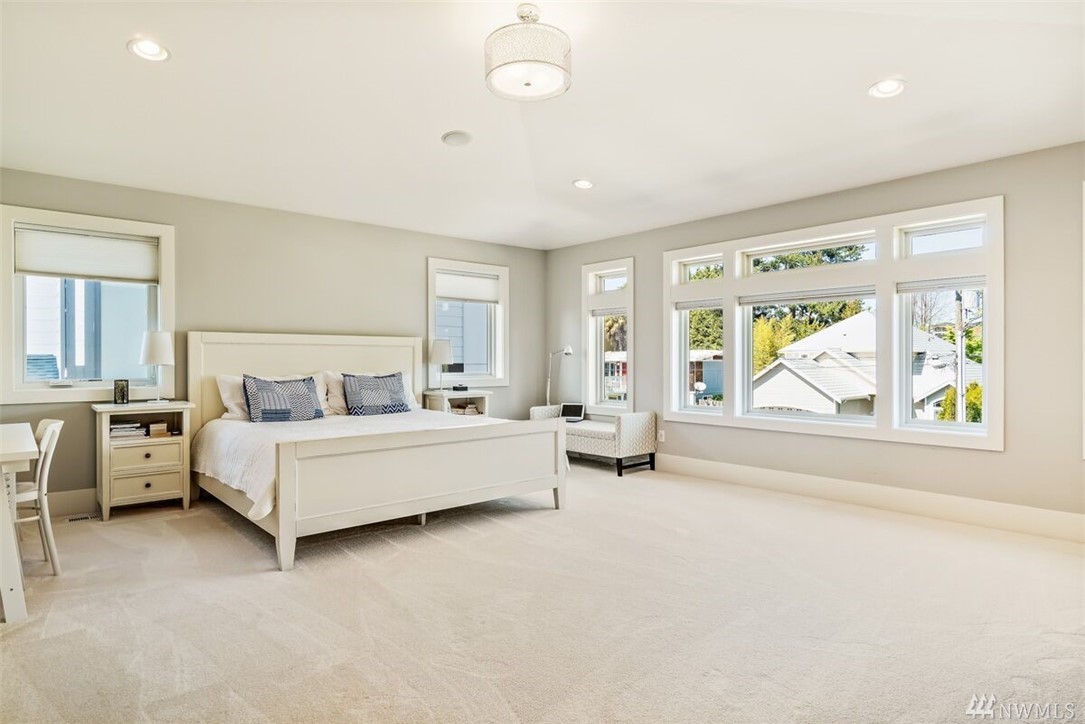 Stunning view of Lake Washington and mountain, this beautiful 4BR/4BA home is at a great location with min's to Seahawks facility and Gene Coulon Beach Park. Enjoy sweeping views on the rooftop deck and main floor deck. Beautiful new lawn on front yard and fully fenced backyard. Gourmet kitchen w/granite countertops, SS appliances. Customized office w/enhanced sound insulation. Heated floor in Master bath, bonus room w/wet bar. 4 car tandem garage. Close to shopping, restaurants and boat launch!
