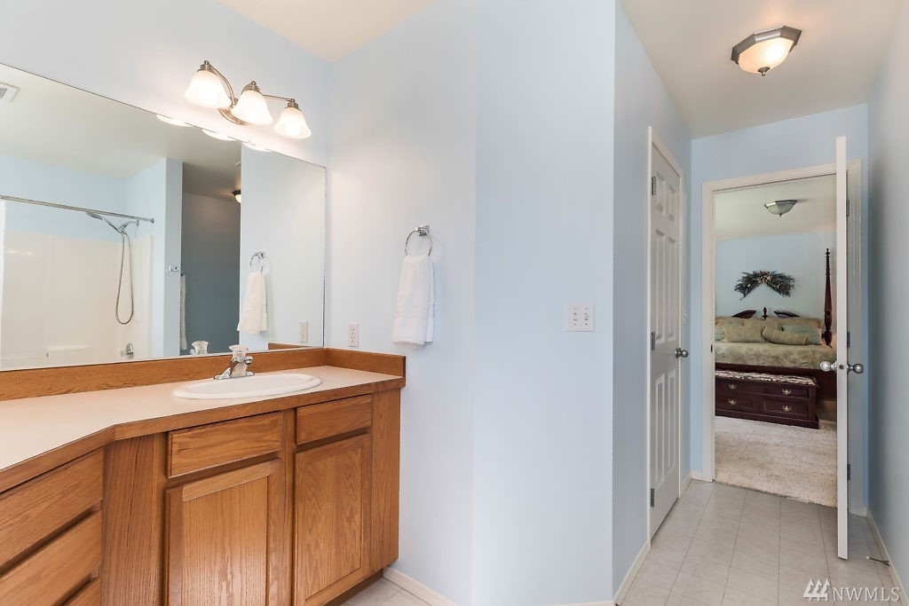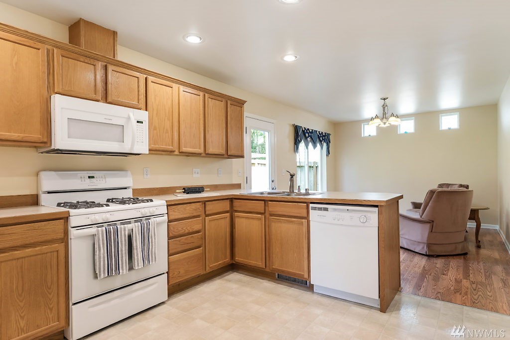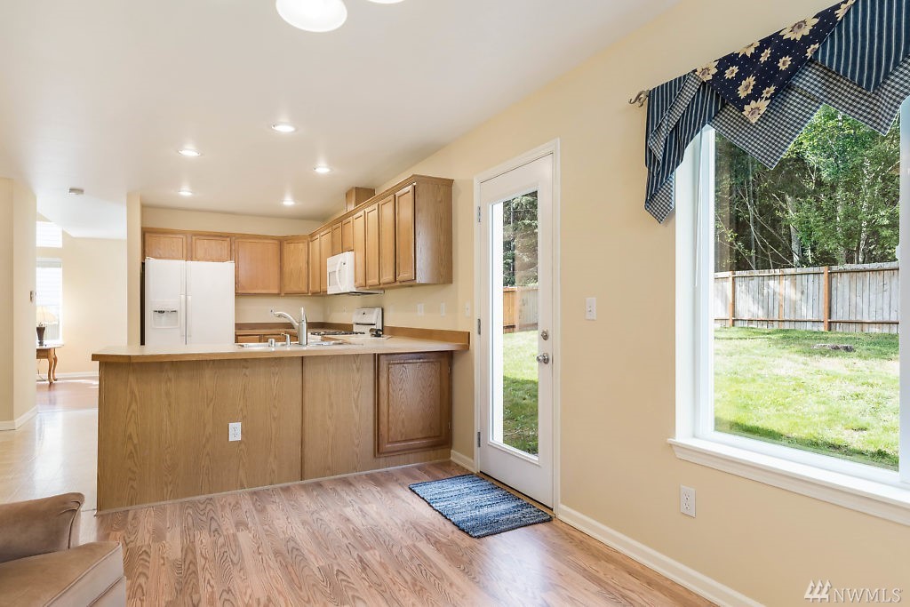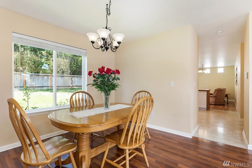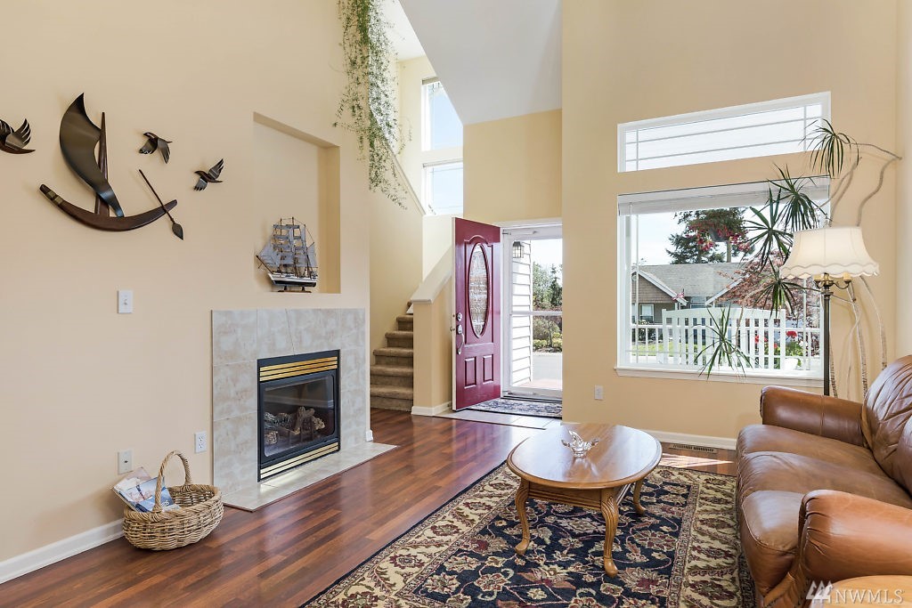 Beautiful home in established neighborhood just minutes from the base or downtown Oak Harbor. Ready-to-move-into condition w/ efficient gas fireplace, furnace & water heater. Laminate flooring. On main floor there is a living room, family room, dining room & powder room. Upstairs is the master suite, plus 2 guest BRs & guest bath. One BR makes a great office. 2-car garage, fenced yard, covered porch & property backs up to evergreen forest. Community park.