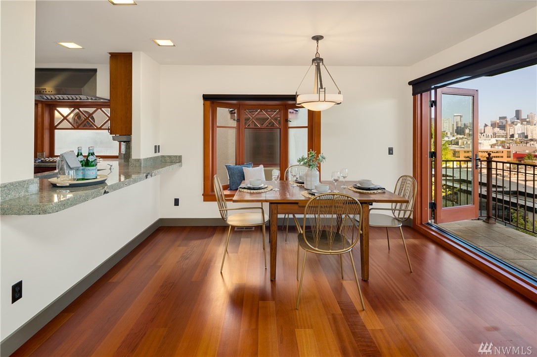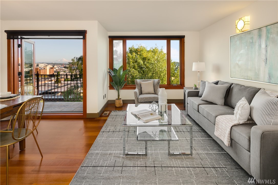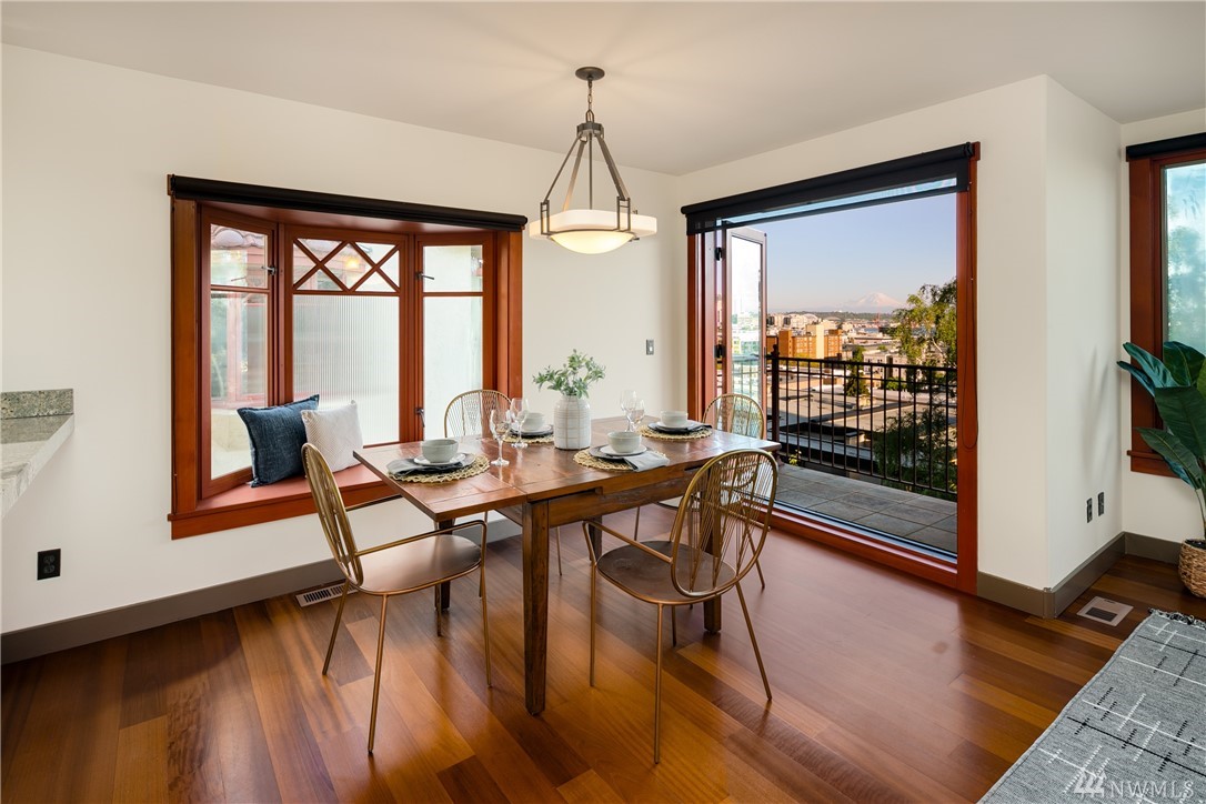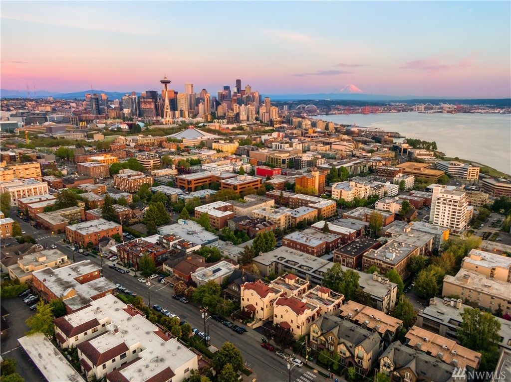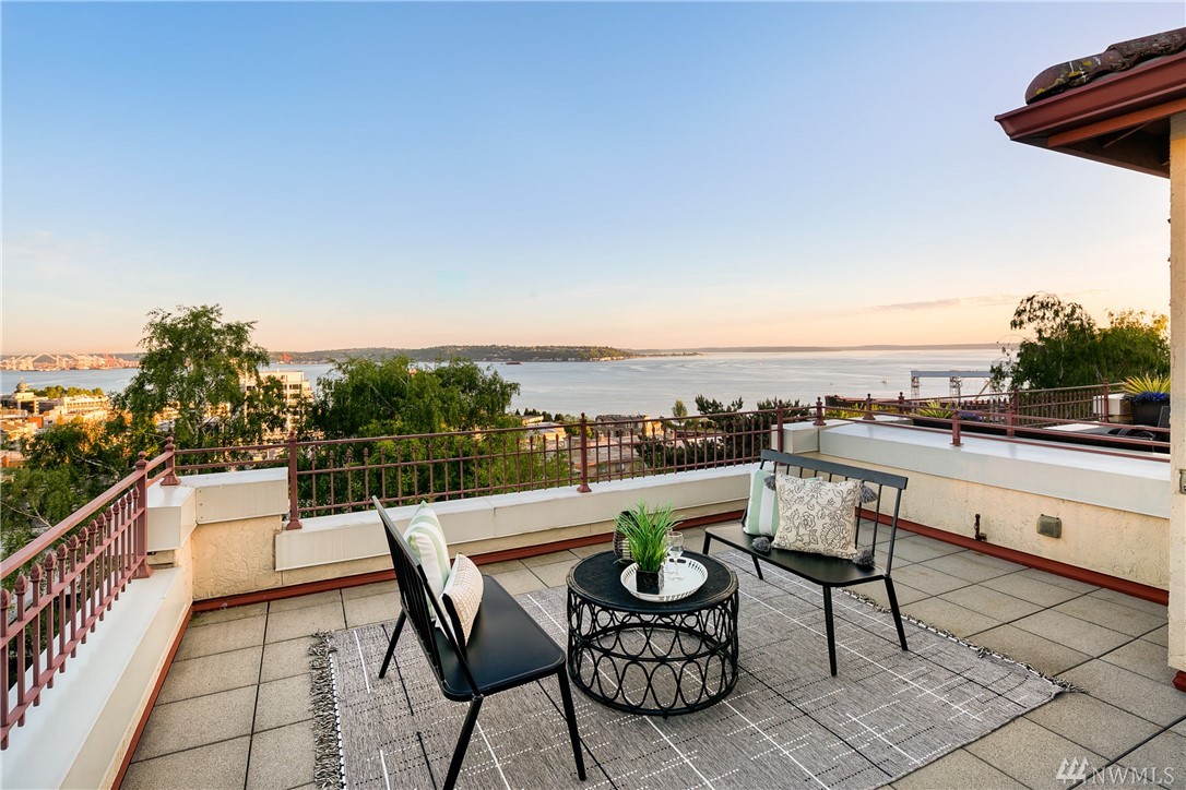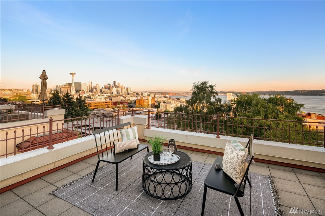 Architecturally pleasing Spanish style home is located on Queen Anne's iconic south slope and enjoys sensational City, Space Needle, Elliott Bay and Mount Rainier views. Open floor plan takes advantage of the panoramic views & offers artisan finishes, Brazilian cherry hardwoods, open liv & din rms & French drs to deck. Mediterranean inspired residence is conveniently located to QA Ave, Sea Center, Expedia’s headquarters, Myrtle Edwards Waterfront Park, South Lake Union, Amazon Campus & downtown.