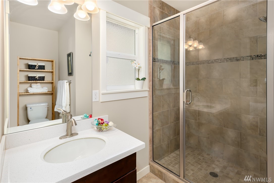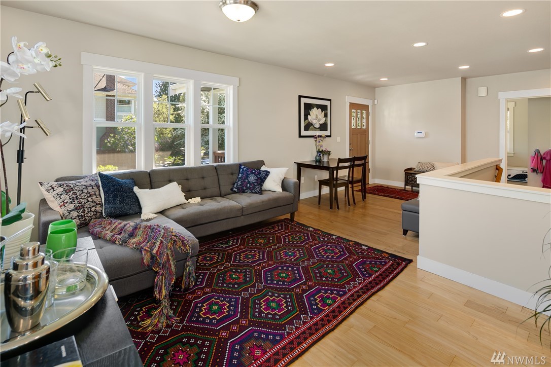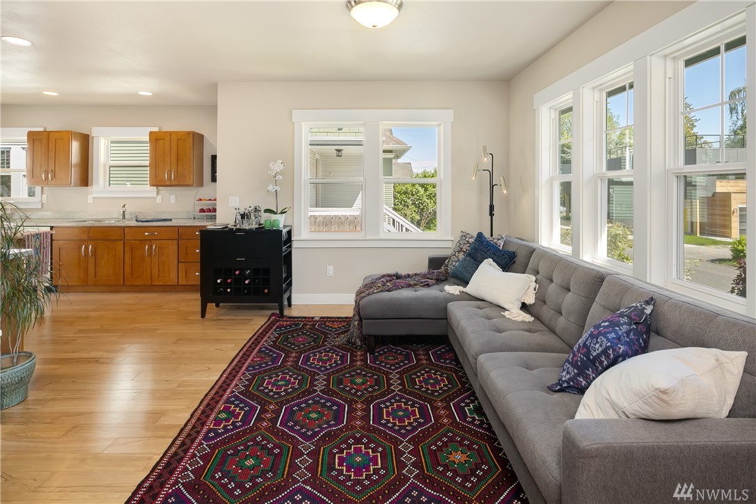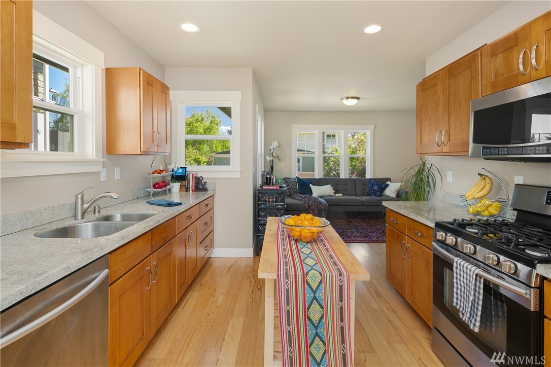 Completely rebuilt in 2014, this sunlit Madrona home on a corner lot beckons you with its inviting front porch! Conveniently located near Madrona shops and cafes this one checks all the boxes: Open floor plan with large kitchen; 3 bedrooms and 2 baths all on main level including master with en-suite bath; 4th bedroom and 3rd bath in lower level with family room and laundry room; off-street parking with room for 2 cars, fenced back yard with herb garden, radiant floor heating. Walk score of 81.