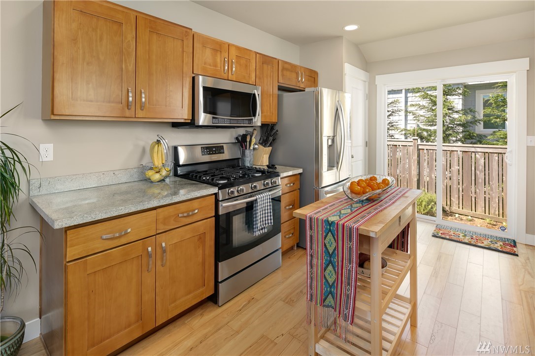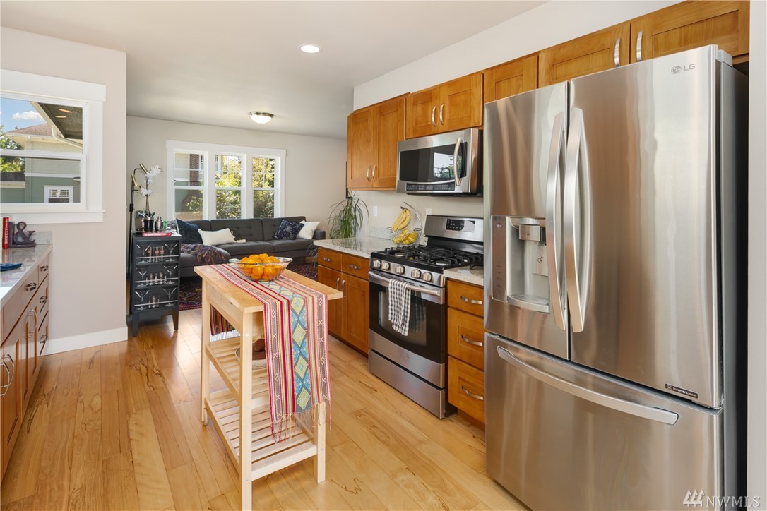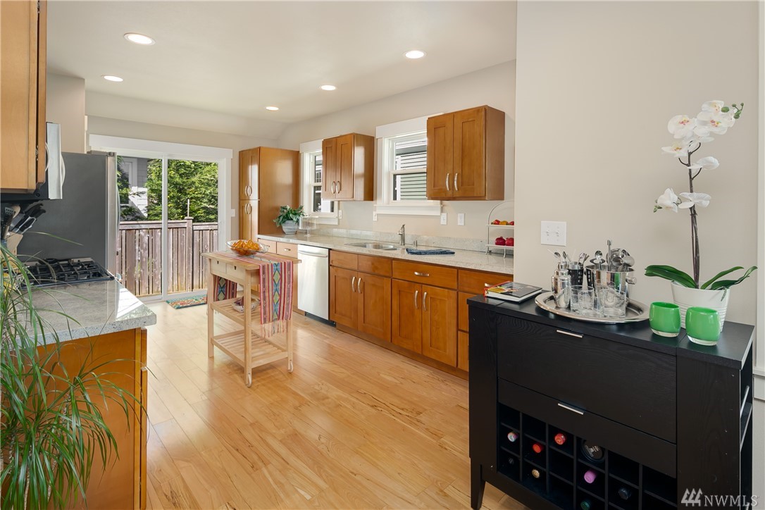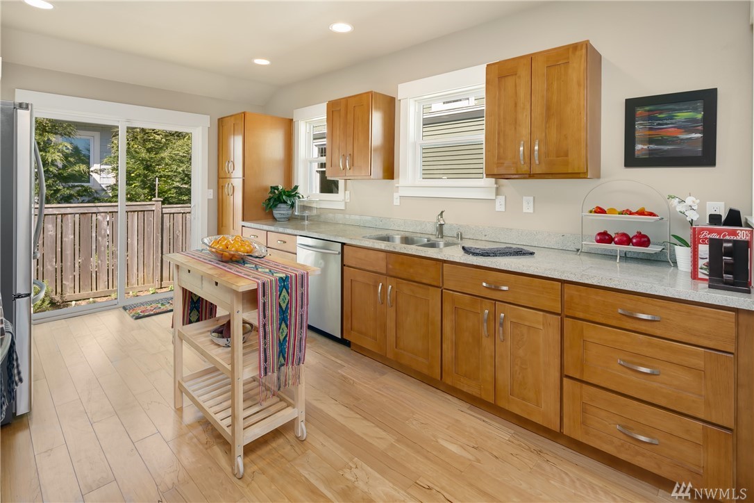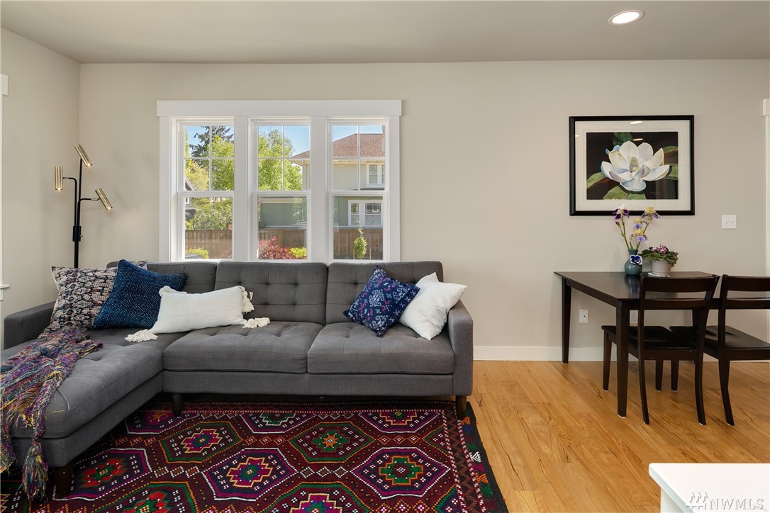 Completely rebuilt in 2014, this sunlit Madrona home on a corner lot beckons you with its inviting front porch! Conveniently located near Madrona shops and cafes this one checks all the boxes: Open floor plan with large kitchen; 3 bedrooms and 2 baths all on main level including master with en-suite bath; 4th bedroom and 3rd bath in lower level with family room and laundry room; off-street parking with room for 2 cars, fenced back yard with herb garden, radiant floor heating. Walk score of 81.