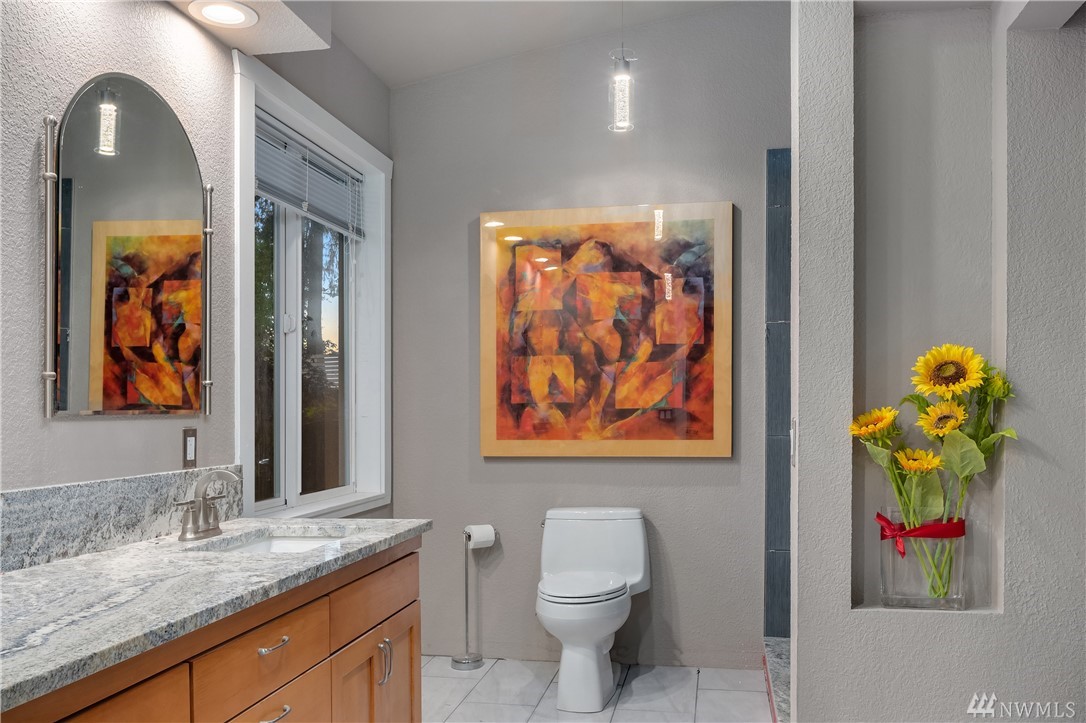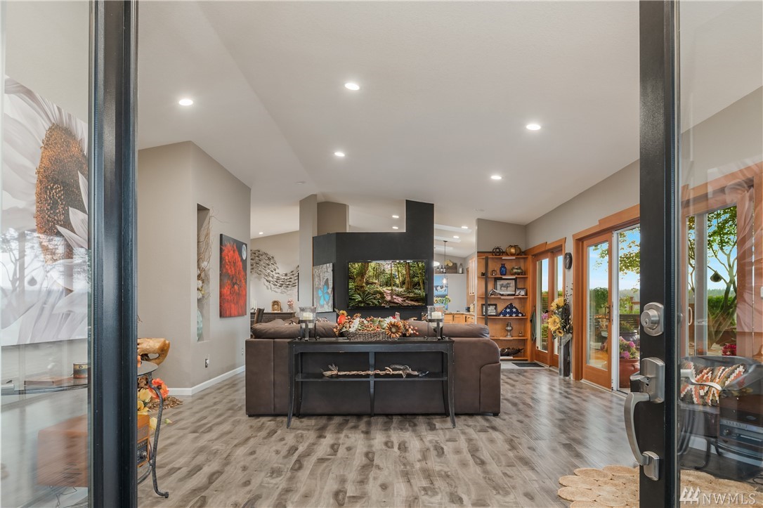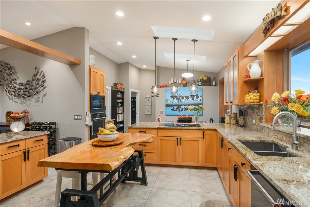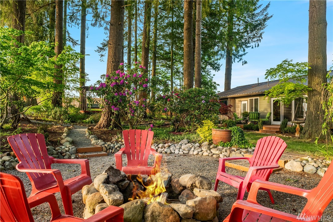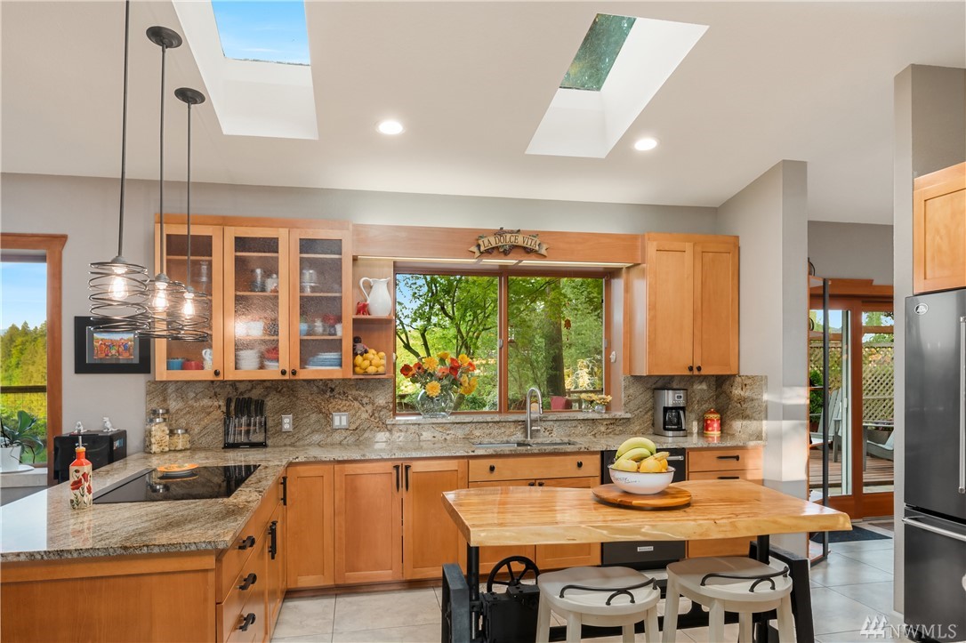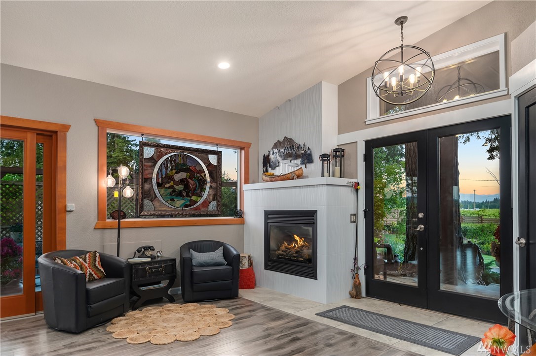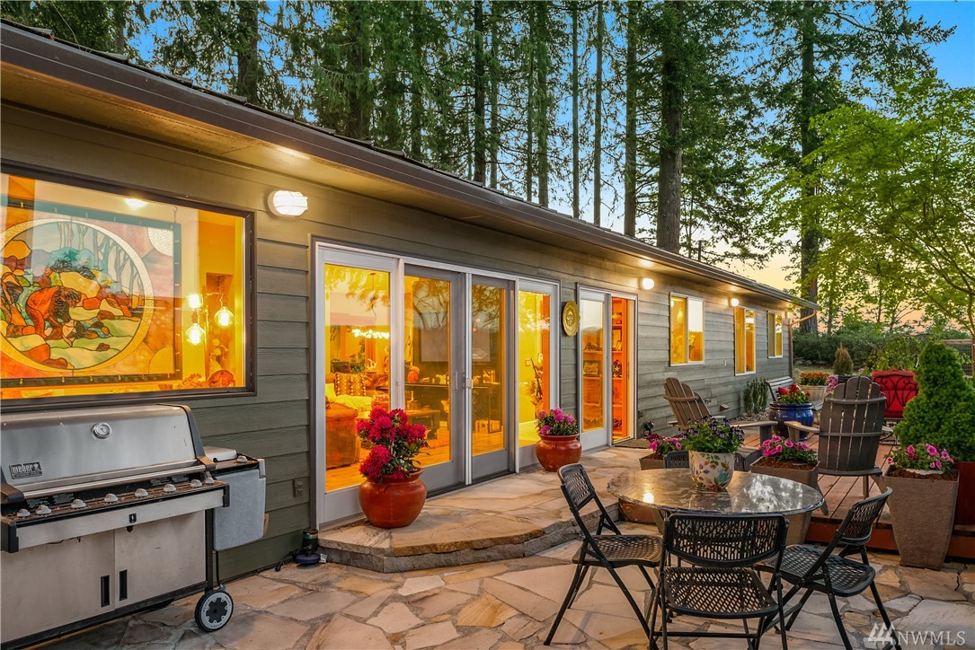 Sophisticated modern meets country living! Commanding Views of Rainier, Flaming Geyser Park & the Green River! A fantastic renovation of a Mid-century Modern rambler awaits behind the gates. Sited to perfection on a private 1 Acre Lot. This tasteful home boasts vaulted ceilings, heated floors and designer color palates that blend seamlessly to the outdoor living spaces with its multiple decks, flagstone patios, fire-pit area. Detached garage w/ finished office & tremendous storage spaces!