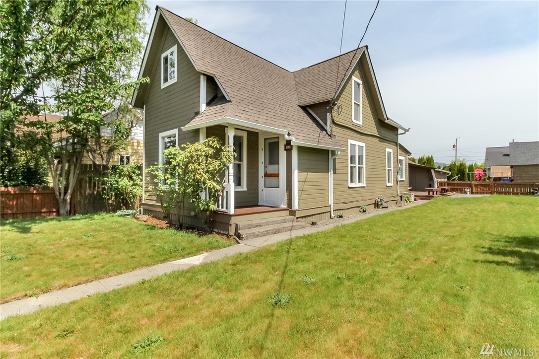 This downtown Buckley craftsman billows with charm! Classic kitchen & dining area into large living w/gas stove & slate surround. Family could easily become main floor bedroom. Laminate throughout beds upstairs incl. large master w/dual closets & recessed lights. Recent updated baths, flooring, fixtures, trim & doors. Updated vinyl windows, electrical panel. New H2O, interior & exterior paint. Huge deck w/built in benches & garden bed + garage & shop, extra alley parking will fit toys too!