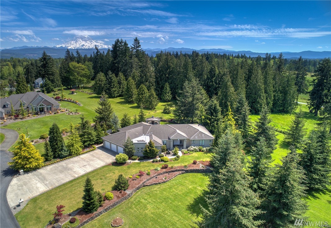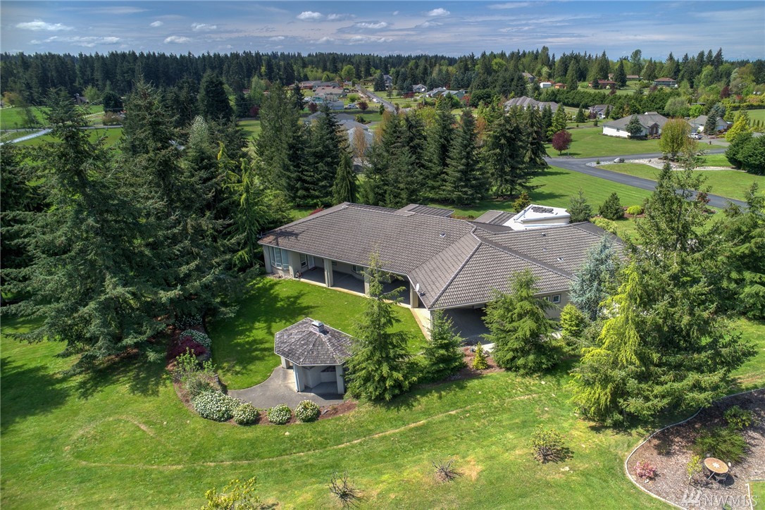 This majestic custom-built rambler on 2+ ac features a gourmet kitchen w/custom cherry cabinets, travertine tile, granite, & SS appl. Lux Master Suite w/double door entry boasts 2 W-I-C's, a tiled walk-in shower w/dual shower heads & jetted tub. Abundance of oversized windows & a multitude of architectural detail t/out the home add a touch of opulence. The magnificent ambiance of this picturesque retreat is as enticing outdoors as it is indoors w/lush, manicured landscaping & lg covered patio.