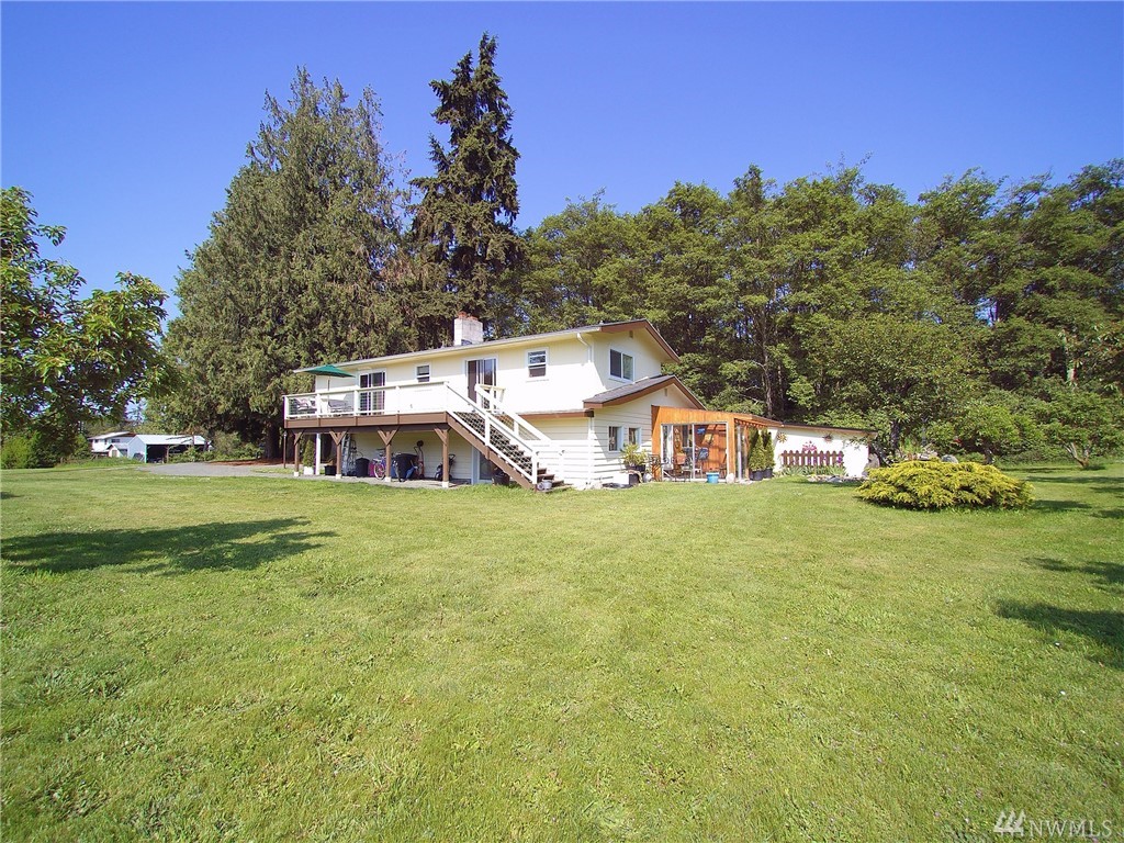 Private setting with mountain views - 2.01 acres. Home has a remodeled kitchen with custom made alder cabinets, solid surface counters and a large island. Eat in dining area. 2 living rooms, 3/4 bath & fireplace & skylights. Southern facing greenhouse. Upper level has the master bedroom and slider to the deck. Two guest rooms. Remodeled full bath. Older home with "good bones".