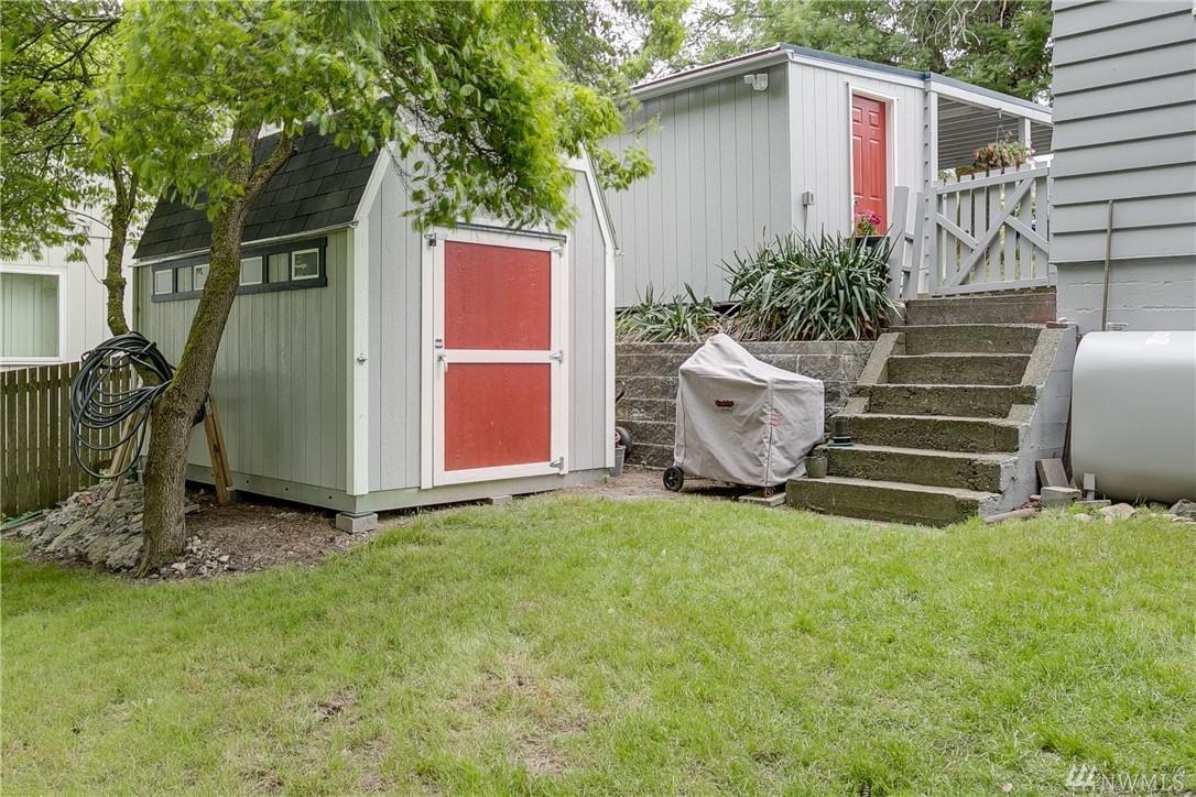 This updated bungalow is sure to beguile you - bright with natural light, offering an open living/dining room ready for entertaining. Or, cozy up to the fire on a rainy fall evening. With updated baths, a sweet retro kitchen, and a lower level rec room perfect for game-day gatherings, this home is ready for its' new owner. A spacious double lot offers splendid privacy as well as potential for future development. Located so close to all West Seattle offers, and just a short commute to downtown.