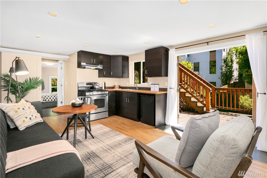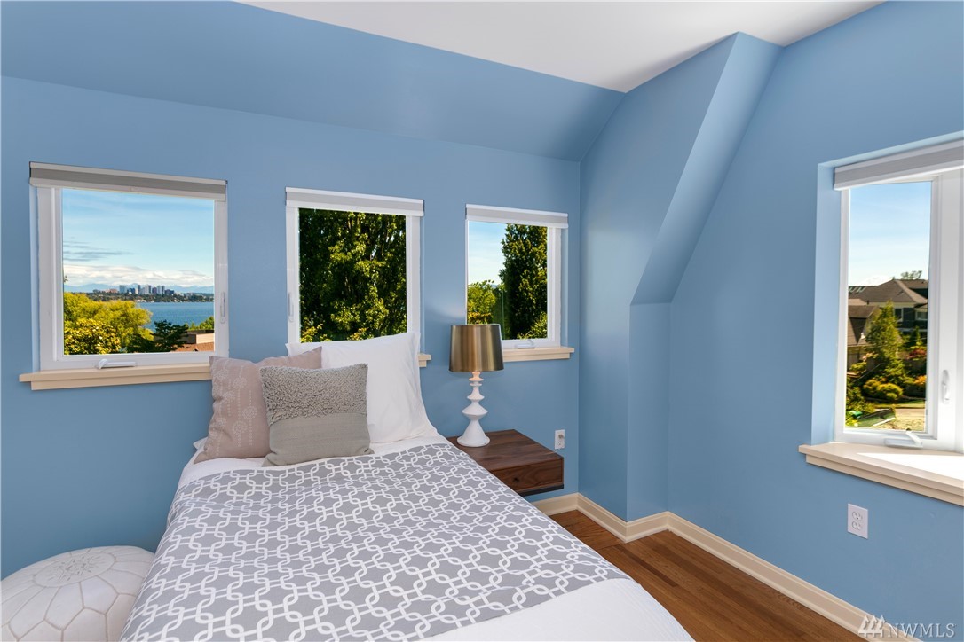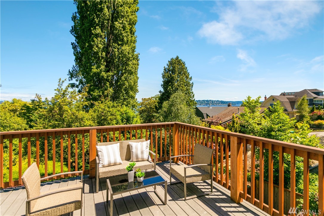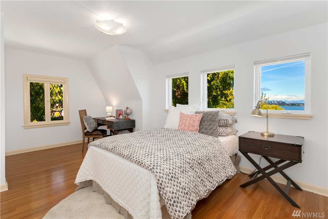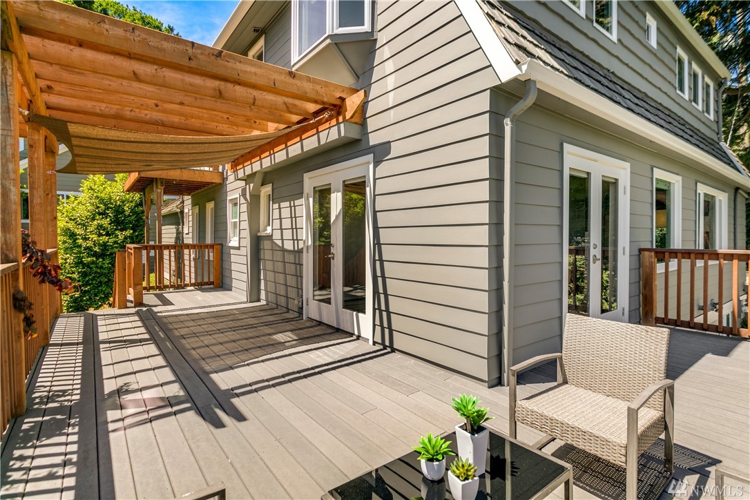 Step beyond the charming exterior into a stylish & perfectly cultivated interior loaded with modern conveniences and every imaginable update. The sleek & sophisticated kitchen is open to the living room complimented by mountain views. French doors in dining room open to a spacious deck. Master bedroom incls en-suite bathroom, walk-in closet & balcony. 1 bdrm ADU / MIL for maximum functionality. A/C, peaceful setting close to Lake Washington, Madrona Beach, Leschi Marina & easy commuting options.