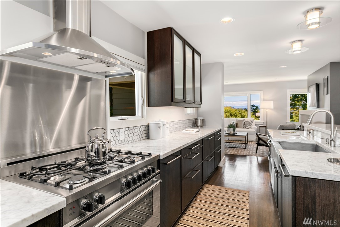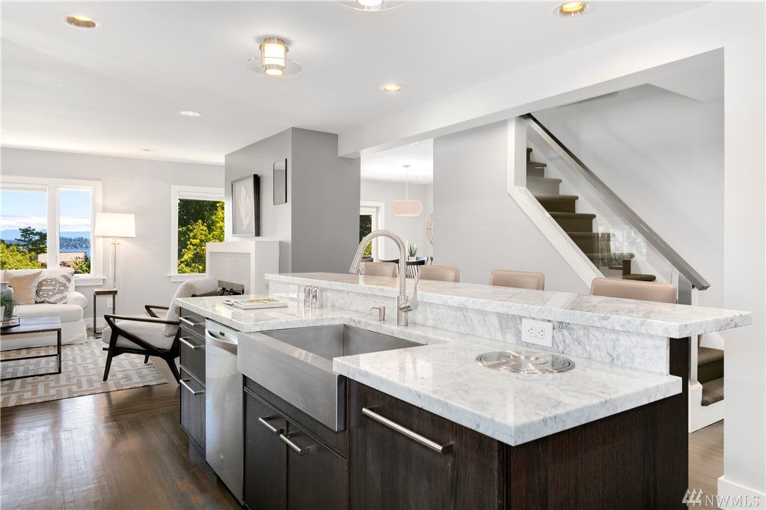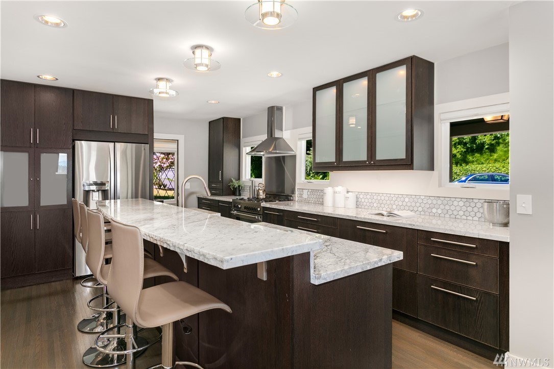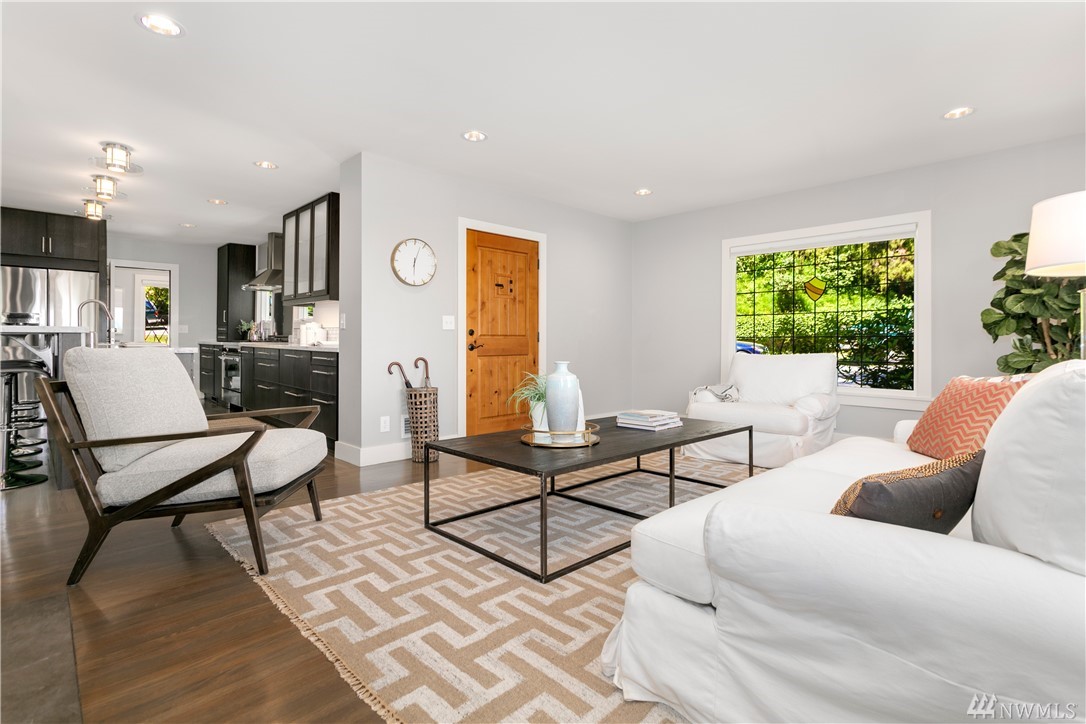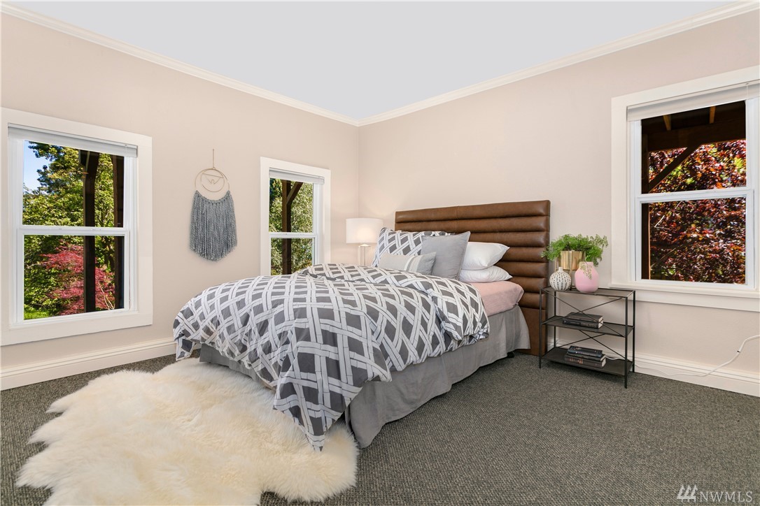 Step beyond the charming exterior into a stylish & perfectly cultivated interior loaded with modern conveniences and every imaginable update. The sleek & sophisticated kitchen is open to the living room complimented by mountain views. French doors in dining room open to a spacious deck. Master bedroom incls en-suite bathroom, walk-in closet & balcony. 1 bdrm ADU / MIL for maximum functionality. A/C, peaceful setting close to Lake Washington, Madrona Beach, Leschi Marina & easy commuting options.