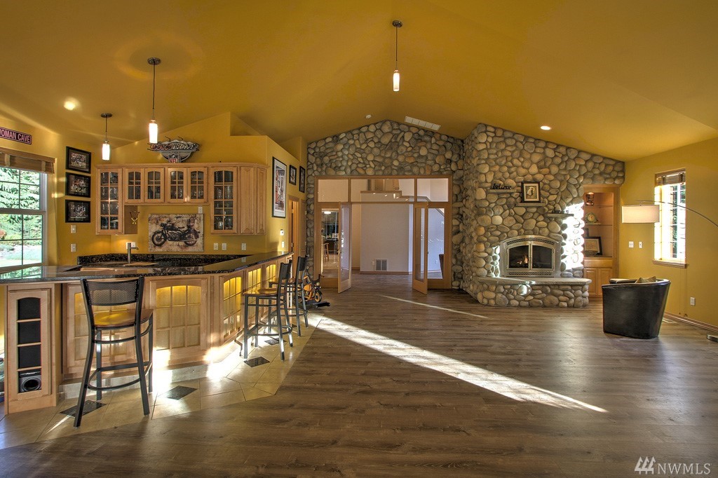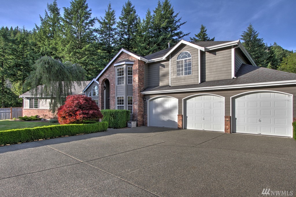 Mntn views & access to 100's of ft of beautiful river frontage, 2 sunny acres, & spacious home designed to live in!! Welcome to the NWest & River Si Estates, a small, gated community just minutes to I90, tucked between Mt Si & the Snoq River. In the home there's space for all. From the formal liv & din areas, kit w/ adjoining eating area & fam rm, huge rec rm w/ RR frplc & bar, to the lovely mstr suite w/ 5 pc ba & htd flrs. Outside enjoy large patio & decks, water feature, slated firepit area.