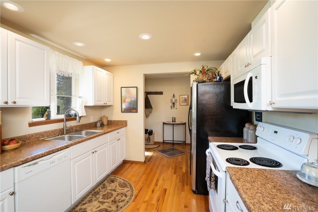 Well maintained and updated Sedro Woolley rambler! One-level living featuring 2 bedrooms, 1 bath, office/den and bonus room with slider to outside. Living room shines with hardwood floors, recessed lighting, wood fireplace and large picture window overlooking the big backyard. Updated kitchen has white cabinets, pantry closet & newer appliances. Beautifully landscaped yard and deck offer a relaxing space to enjoy. Great cul-de-sac location, close to schools & SW SWIFT center