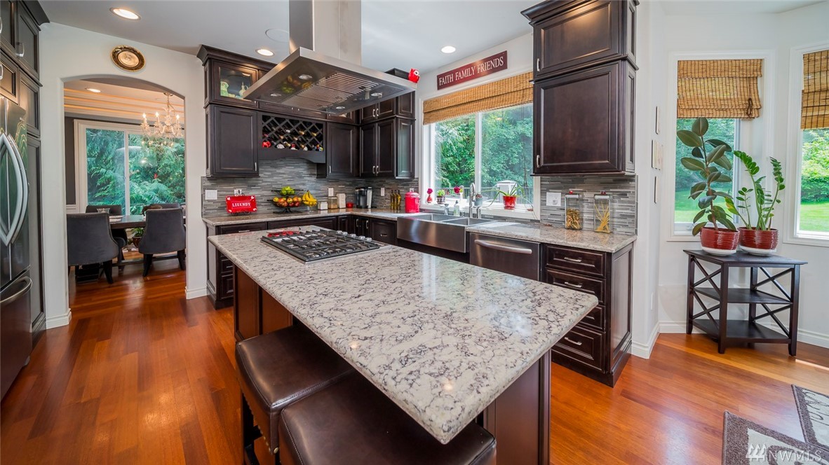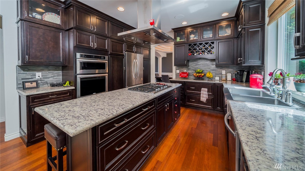 Beautiful custom built 4+ Bed 3.5 Ba Home in the highly desirable Aspen Community, over 5,000 Sq Ft of luxurious living, private 1 acre lot, 3 marble gas F/P's, rich hardwood floors, gourmet kitchen w/island. Lots of natural light, spacious open floor plan. Large master bedroom, 5 piece master bath, jetted tub, shower with 6 spray nozzles, Beautifully landscaped yard with fountain, expansive 800 sq ft Deck, built-in hot tub, great for outdoor entertaining. media room, 2nd Kitchen, Gorgeous Home