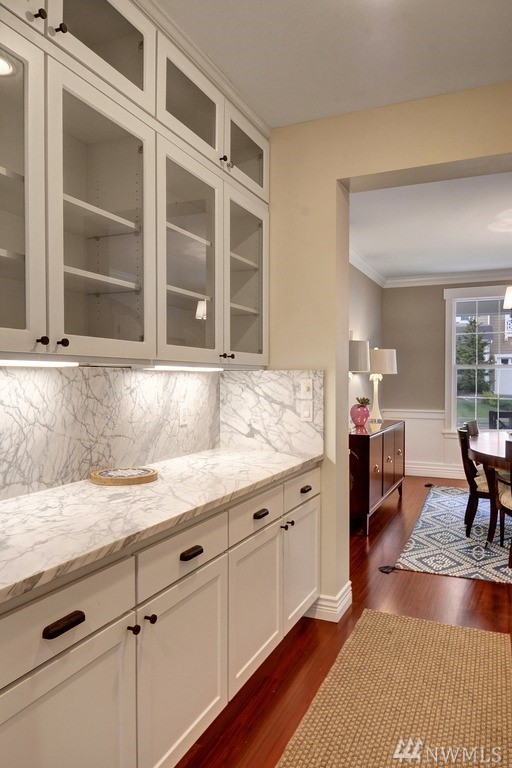 Rare opportunity to live in absolute luxury on The Ridge!! This spectacular home w/ all the bells & whistles & more one would expect. A spacious interior featuring 6 bedrooms, 4.5 baths, hardwoods on the main & a Chef's kitchen w/ Carrera marble countertops & stainless appliances. Master suite w/ vaulted ceilings, a spa inspired bath w/heated floors, soaking tub & walk in closet. The multiple decks overlook a beautiful yard buffered by open wooded space & the famous TPC Golf course.