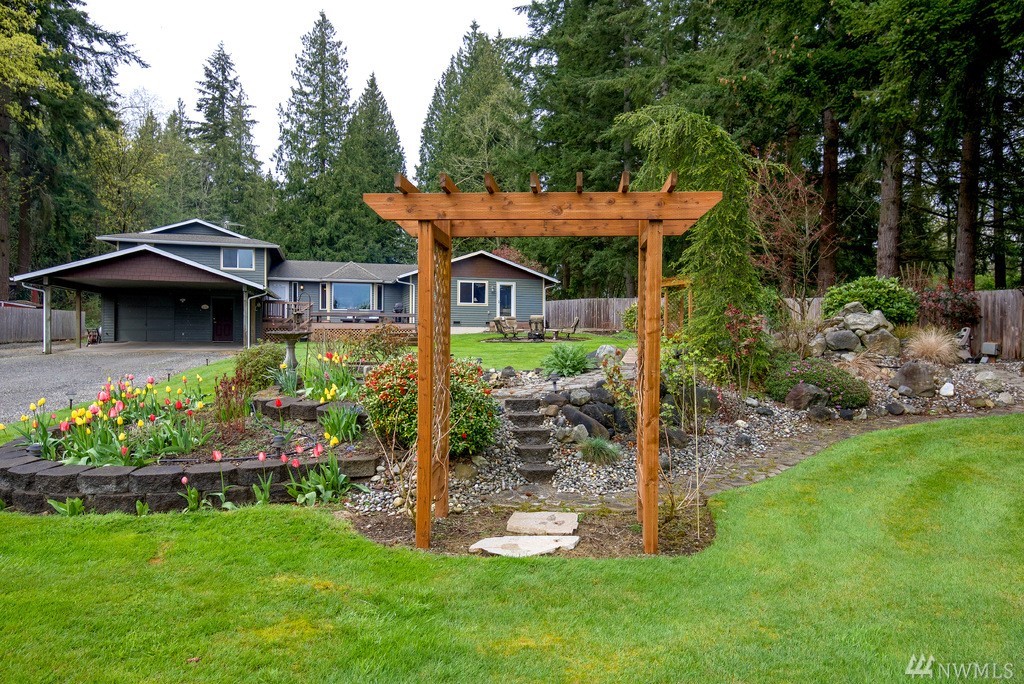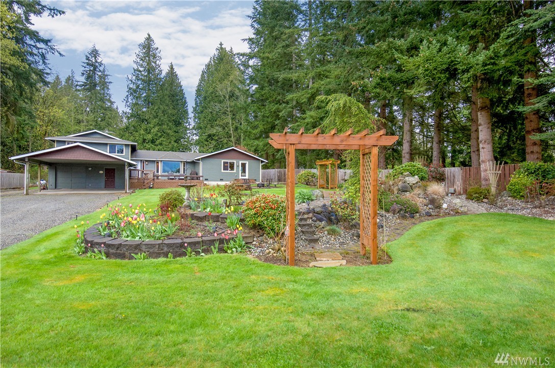 Tranquil living at this Lk Ki home where relaxation and recreation meet! Spacious, open 2376sf home with 4bed, 4ba incl main floor master suite + 2nd master bedroom, both with lake views! Pride of ownership and many upgrades. A/C, mudroom, central vac, more! Take in the serene views of Lake Ki on an inviting 1.35 acres with walking trails, tree fort, fire pits, gardens, water feature, covered RV parking with power and outbuilding/storage/workshop. I-5, shopping less than 4 miles. View the video!