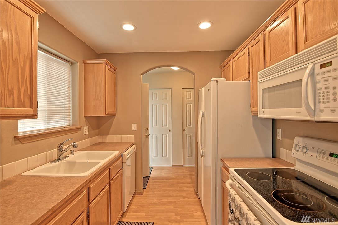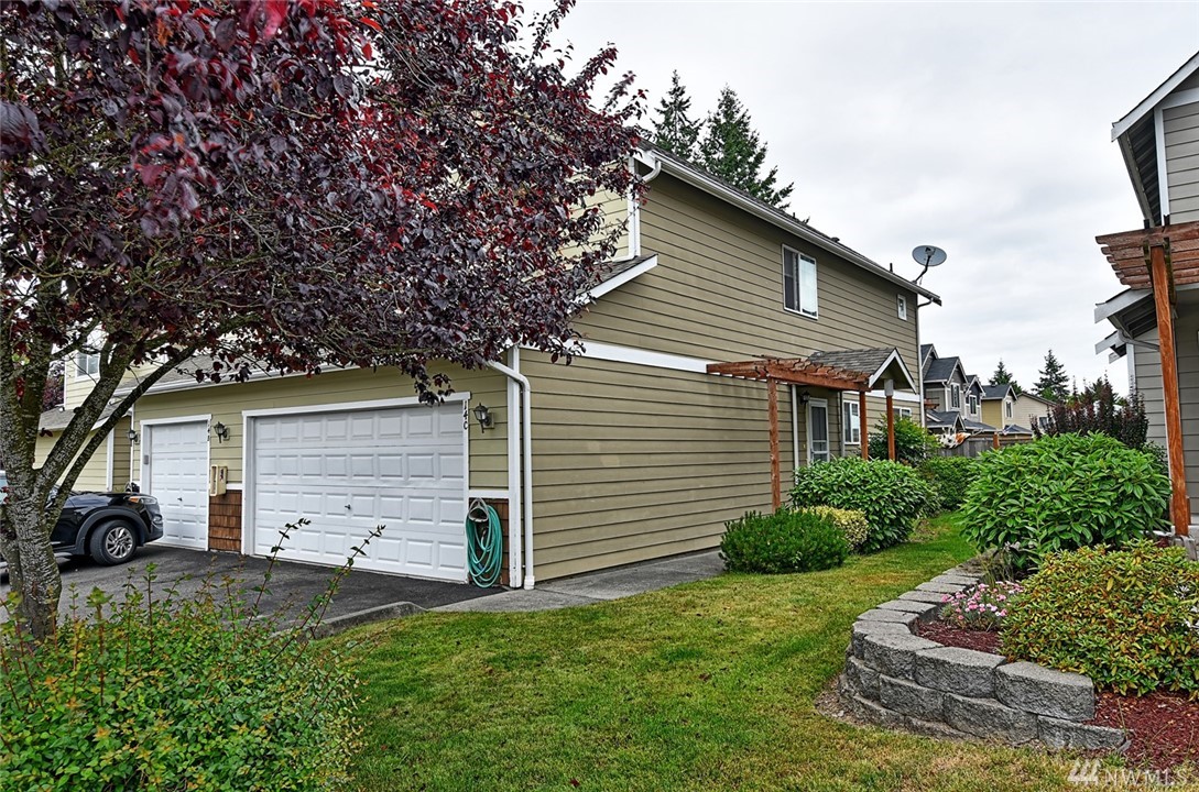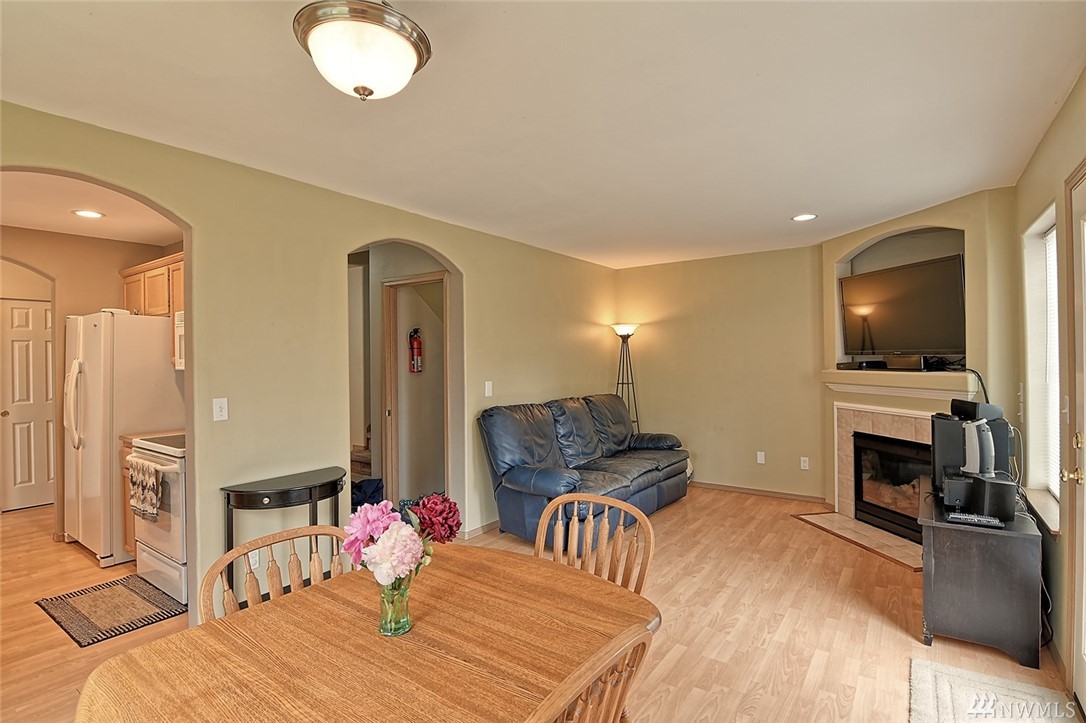 Welcome to this spacious 3 bedroom, 2.5 bath end unit town home with a 2 car garage! Warm colors and open layout with a gas fireplace, laminate floors, dining room leads out the slider to the private fenced back yard and patio. Lots of storage and pantry off kitchen. Large master bedroom with master bath & walkin closet, 2 more roomy bedrooms, full bath and utility room upstairs. Fabulous community with play area and within walking to restaurants, shopping, banks, bus line, and so much more!