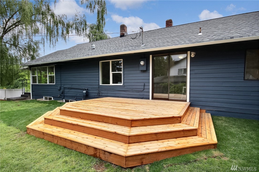 Welcome home to this charming daylight rambler. 3 Bedrooms Up and 3 bonus rooms Down. Lots of storage. Must see to believe!. Spacious, bright open floor plan, beautifully updated throughout. Large, fenced outdoor space with attractive new deck! Lots of upgrades including new stainless steel appliances and new flooring. Great freeway access just 14 minutes to downtown Seattle and and just one mile from the light rail. Future potential to convert to lower area into an ADU/Rental.